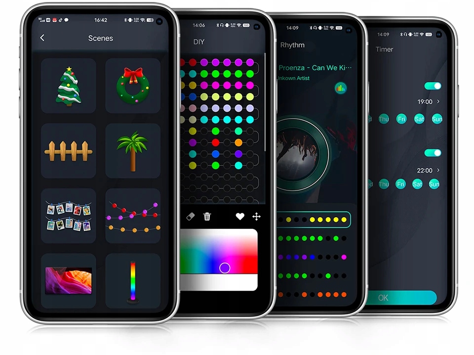 Te lampki to idealny wybór dla osób, które cenią sobie prostotę obsługi i efektowne oświetlenie. Dzięki aplikacji na smartfon oraz dołączonemu pilotowi możesz dostosować kolor i tryb świecenia do swoich potrzeb.