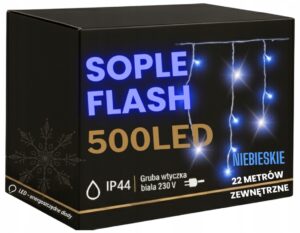 Kurtyna świetlna sople 120 LED niebieskie + zimny flash, 7,15 m