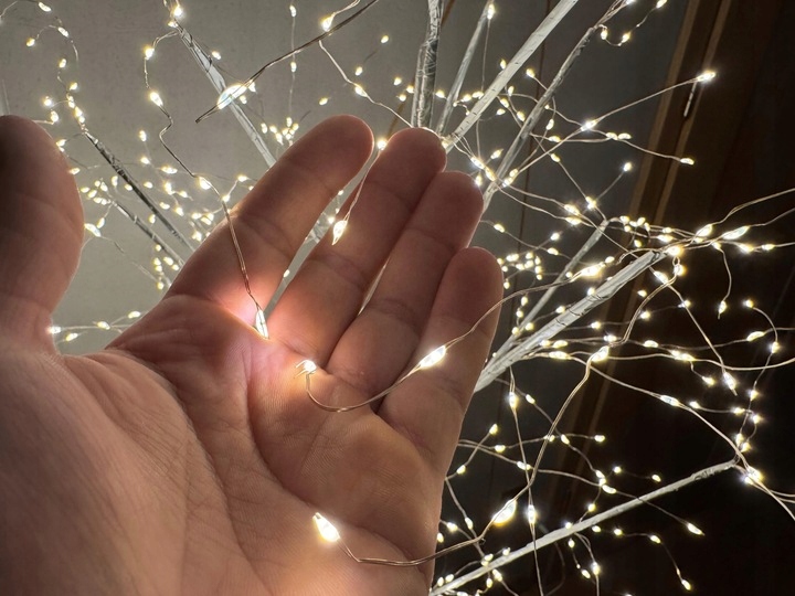 Drzewko świąteczne LED 130 cm to wyjątkowa ozdoba, która tworzy ciepły i nastrojowy klimat. Zastosowano aż 288 mikro LED w barwie białej ciepłej, dlatego światło jest gęste, równomierne i bardzo efektowne. Co więcej, drobne punkty świecenia dają wrażenie delikatnych „iskier”, więc dekoracja wygląda nowocześnie i luksusowo.