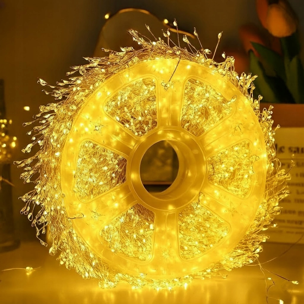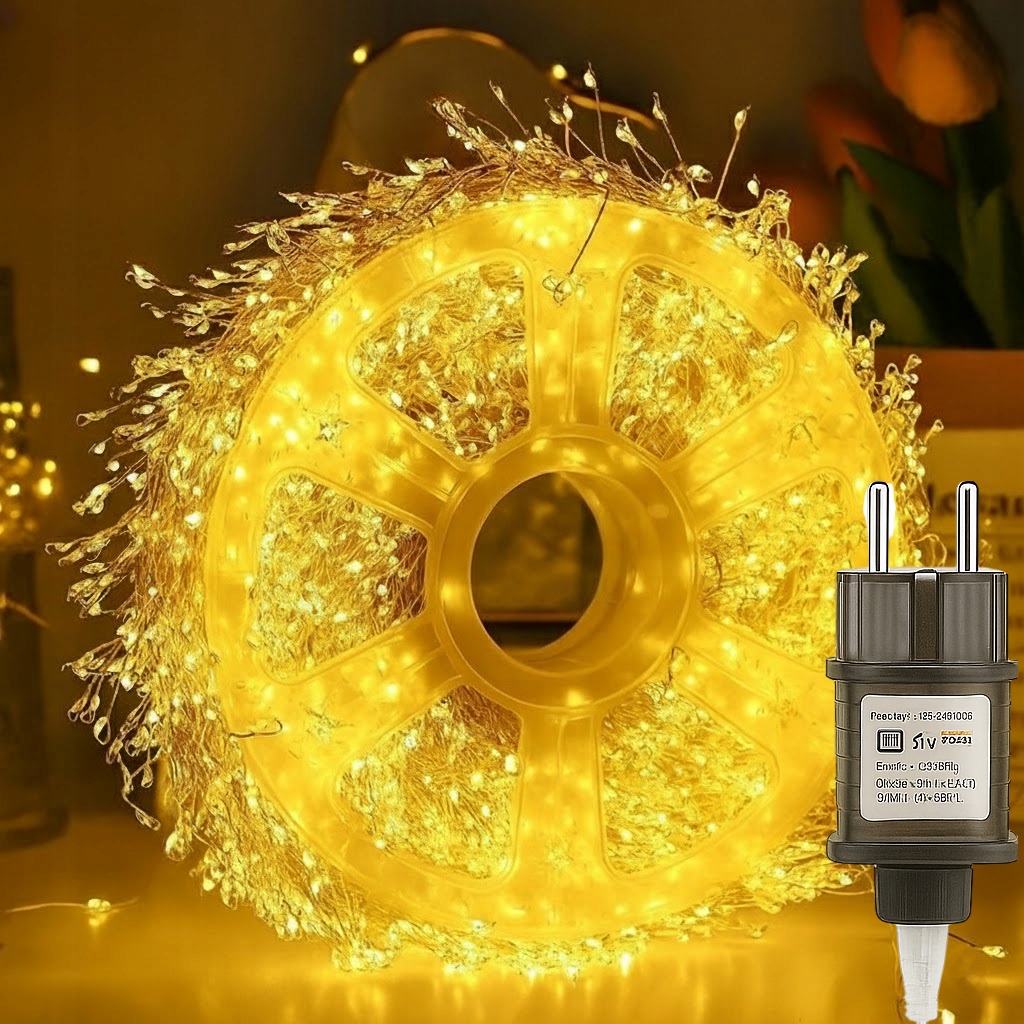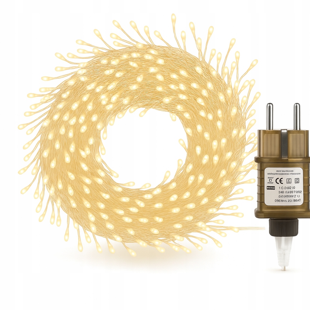 Lampki choinkowe LED 1000 diod typu igiełki to efektowna dekoracja świąteczna, która tworzy ciepły i przytulny klimat zarówno w domu, jak i w ogrodzie. Dzięki cienkiemu, elastycznemu drucikowi możesz swobodnie kształtować oświetlenie, a więc owijać choinki, stroiki, poręcze, ramy okienne czy witryny.
