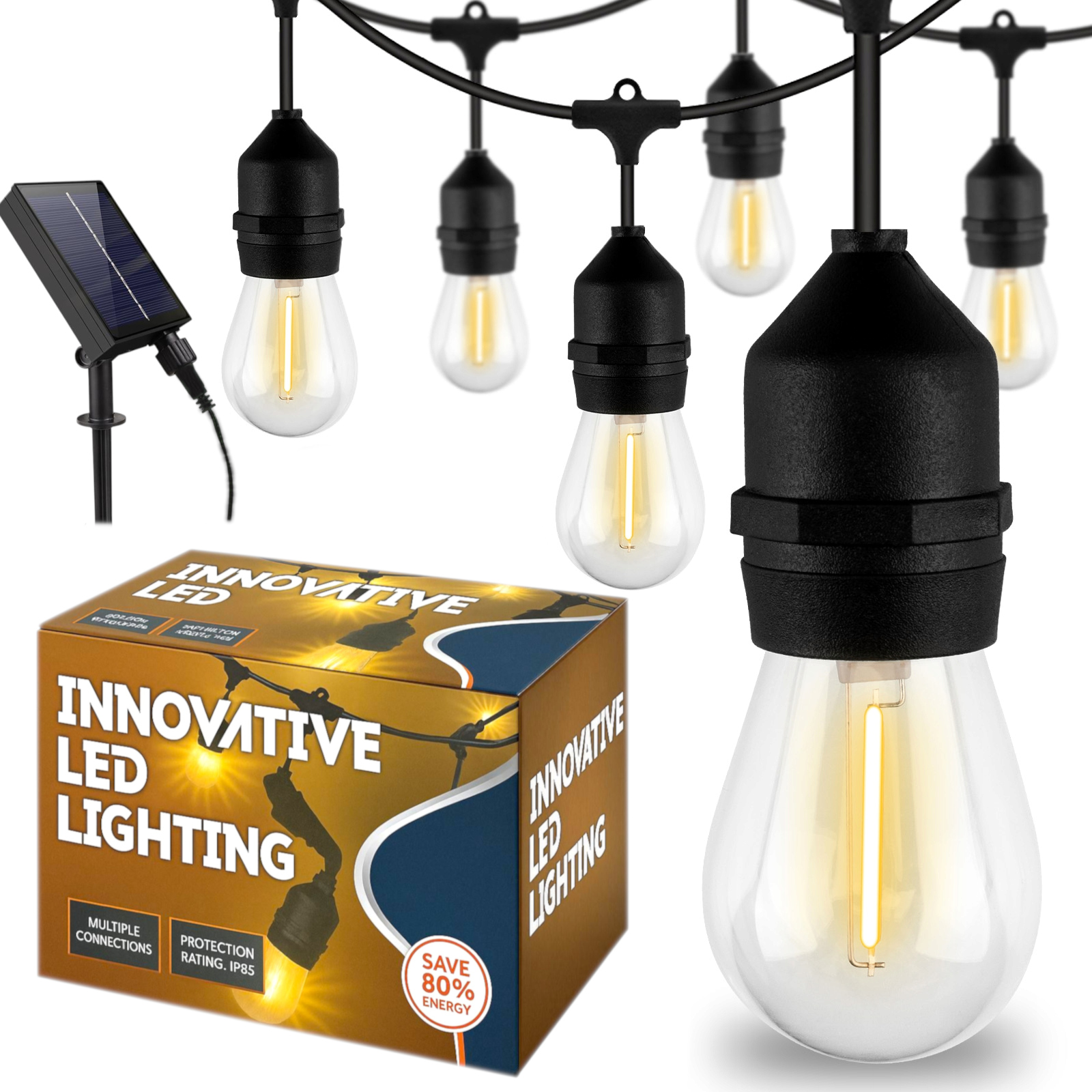 Girlanda Solarna LED 5m z 10 żarówkami E27 to wyjątkowa dekoracja świetlna do ogrodu, tarasu, balkonu czy altanki. Lampki ogrodowe LED zasilane energią słoneczną zapewniają niepowtarzalny klimat podczas spotkań z przyjaciółmi, kolacji przy świecach czy imprez plenerowych.