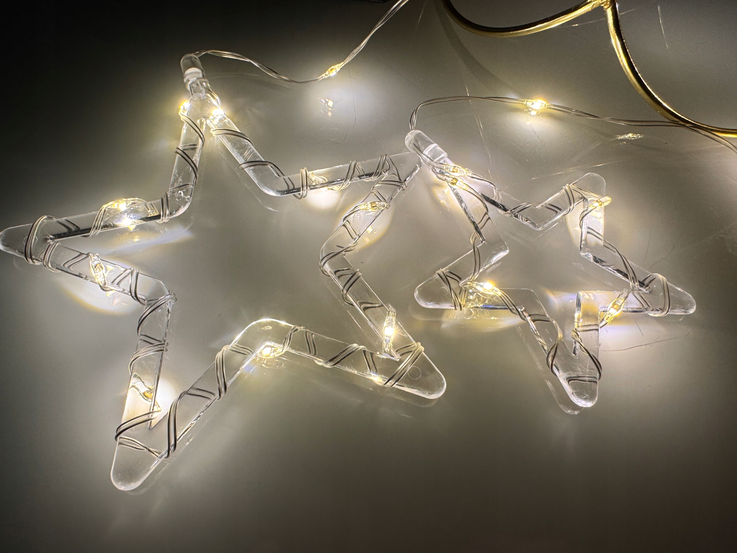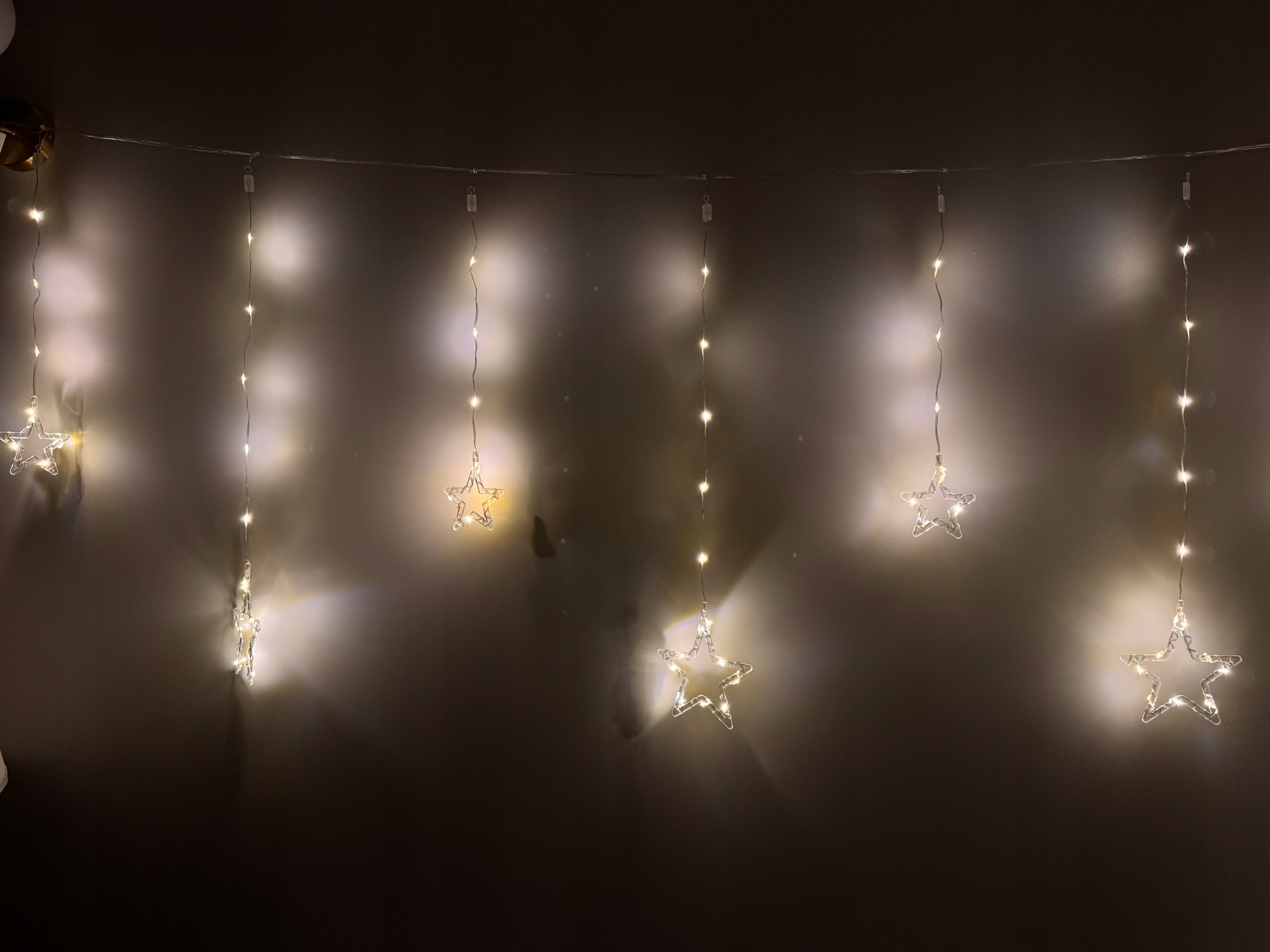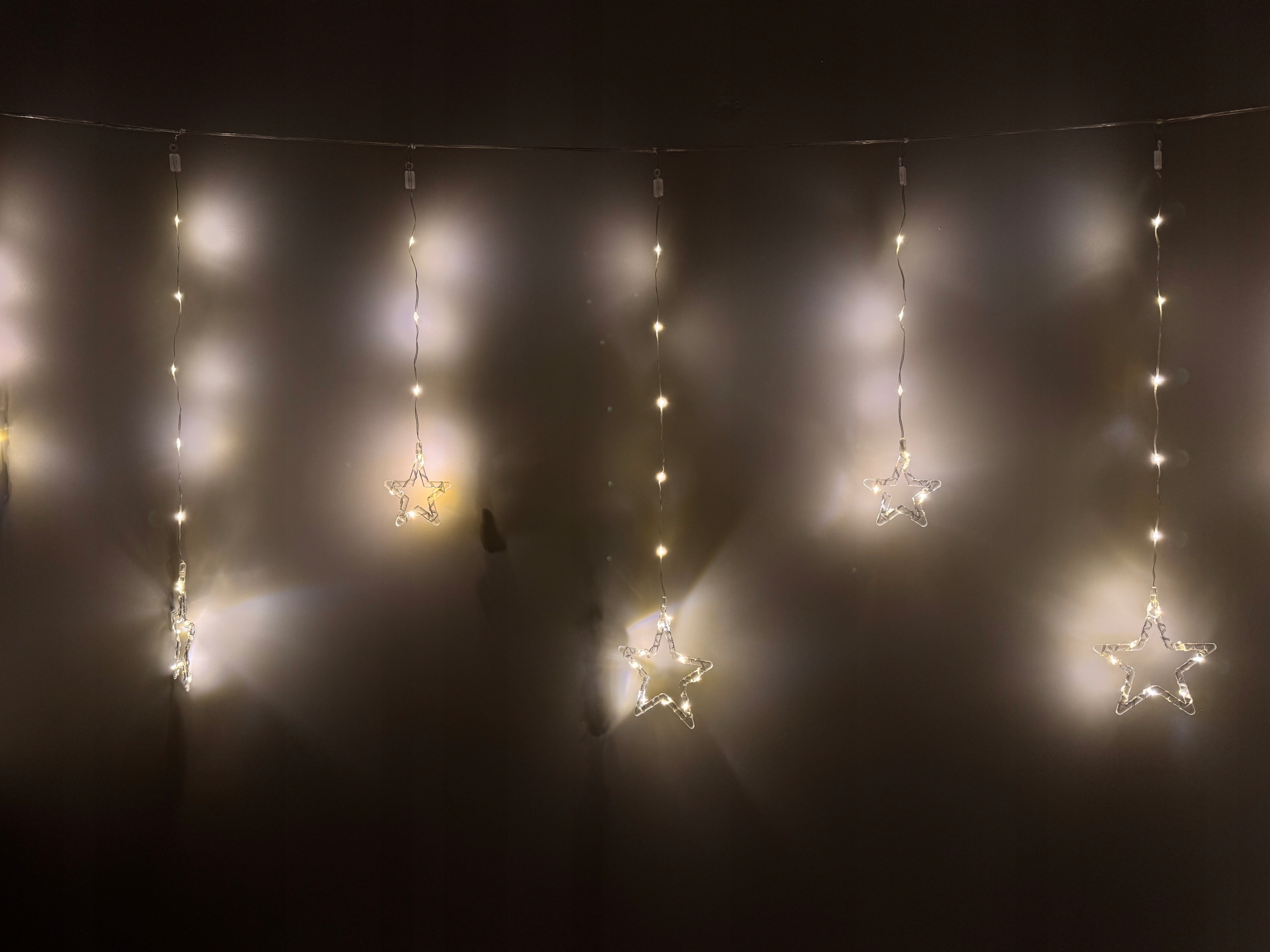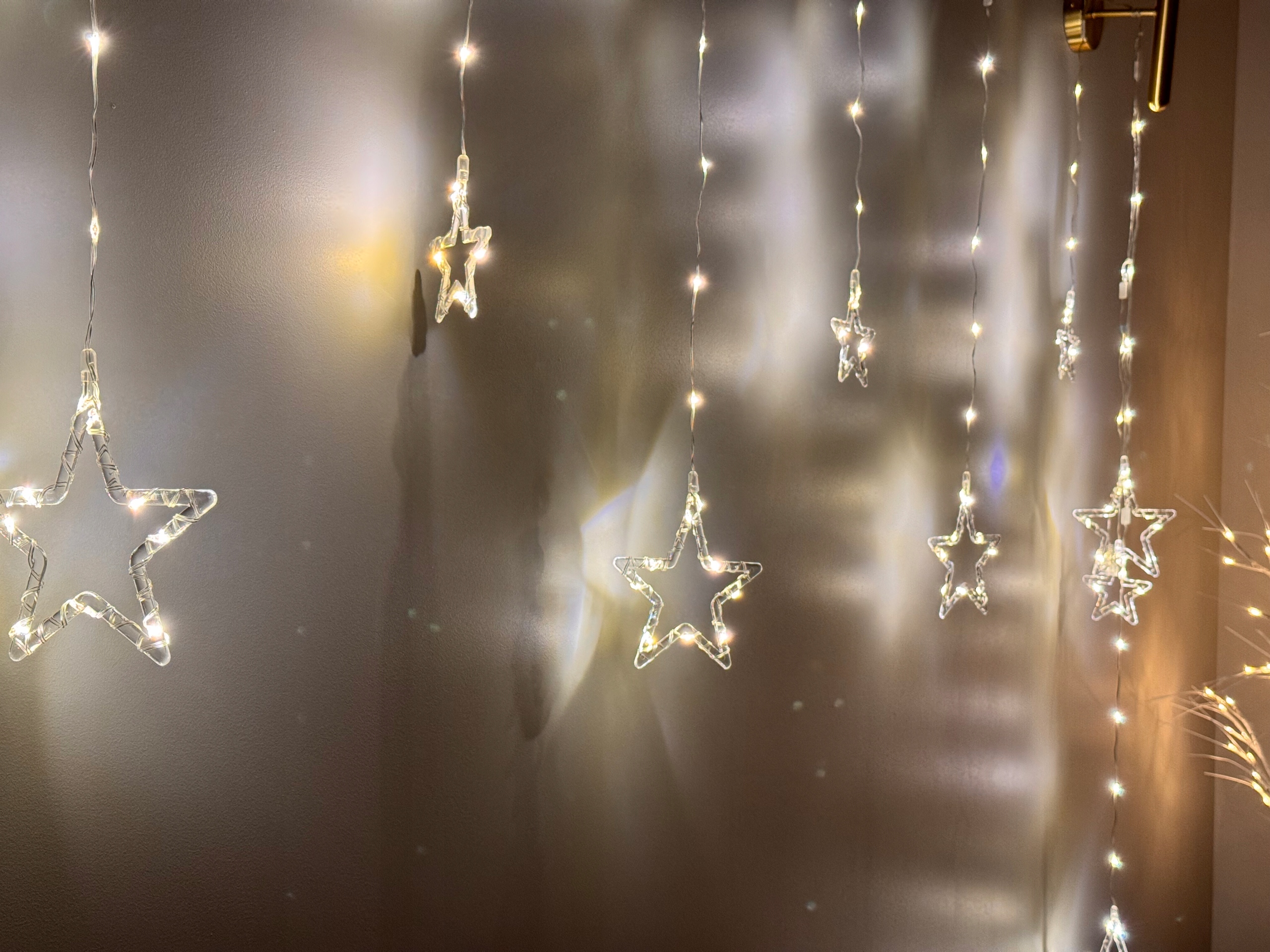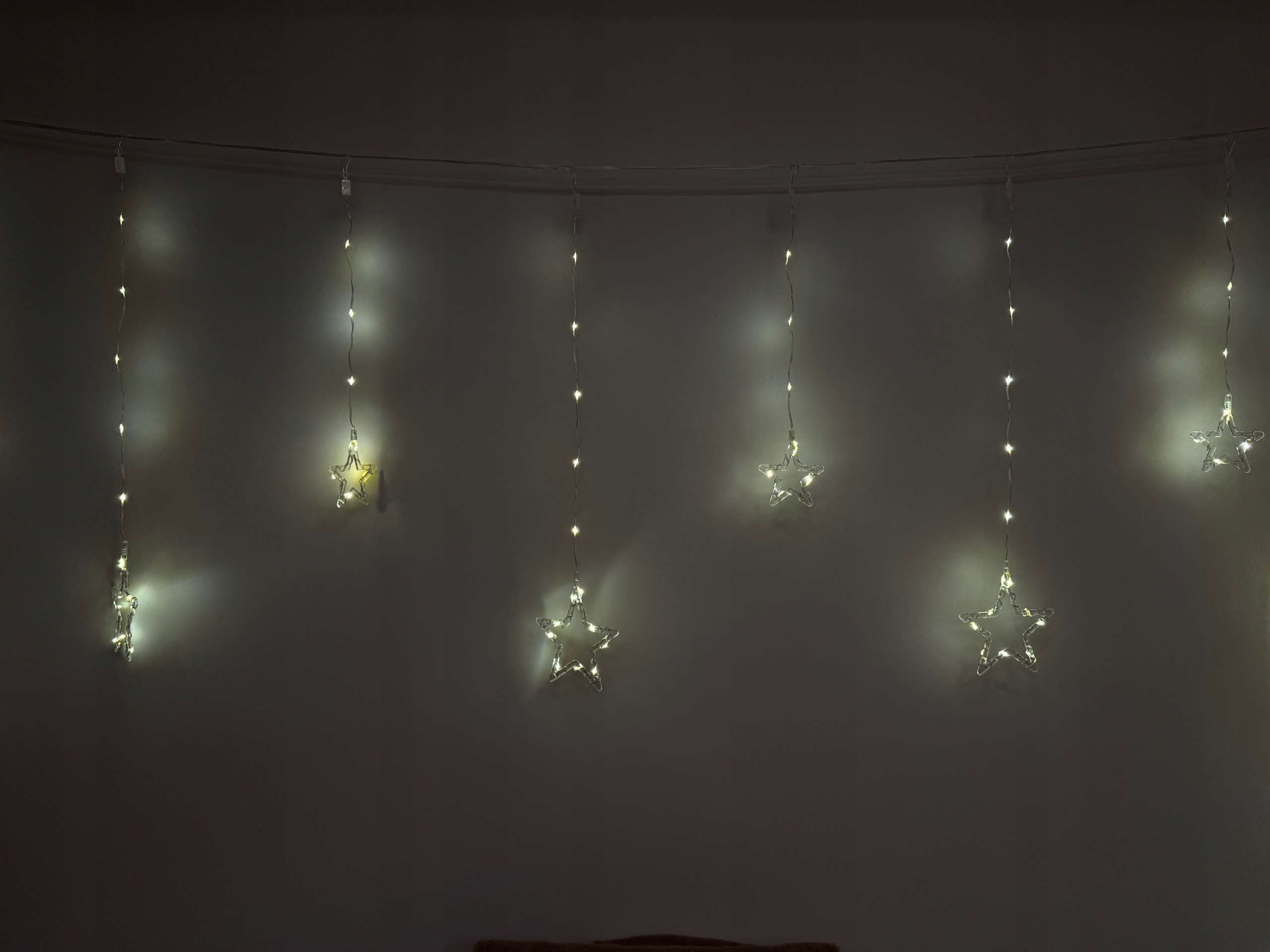 Kurtyna LED Gwiazdki to wyjątkowa dekoracja świetlna, która rozświetli Twoje wnętrze i doda mu świątecznego klimatu. Dzięki ozdobnym zawieszkom w kształcie dużych i małych gwiazdek oraz ciepłemu białemu światłu stworzysz magiczną atmosferę w salonie, sypialni, na balkonie czy tarasie.