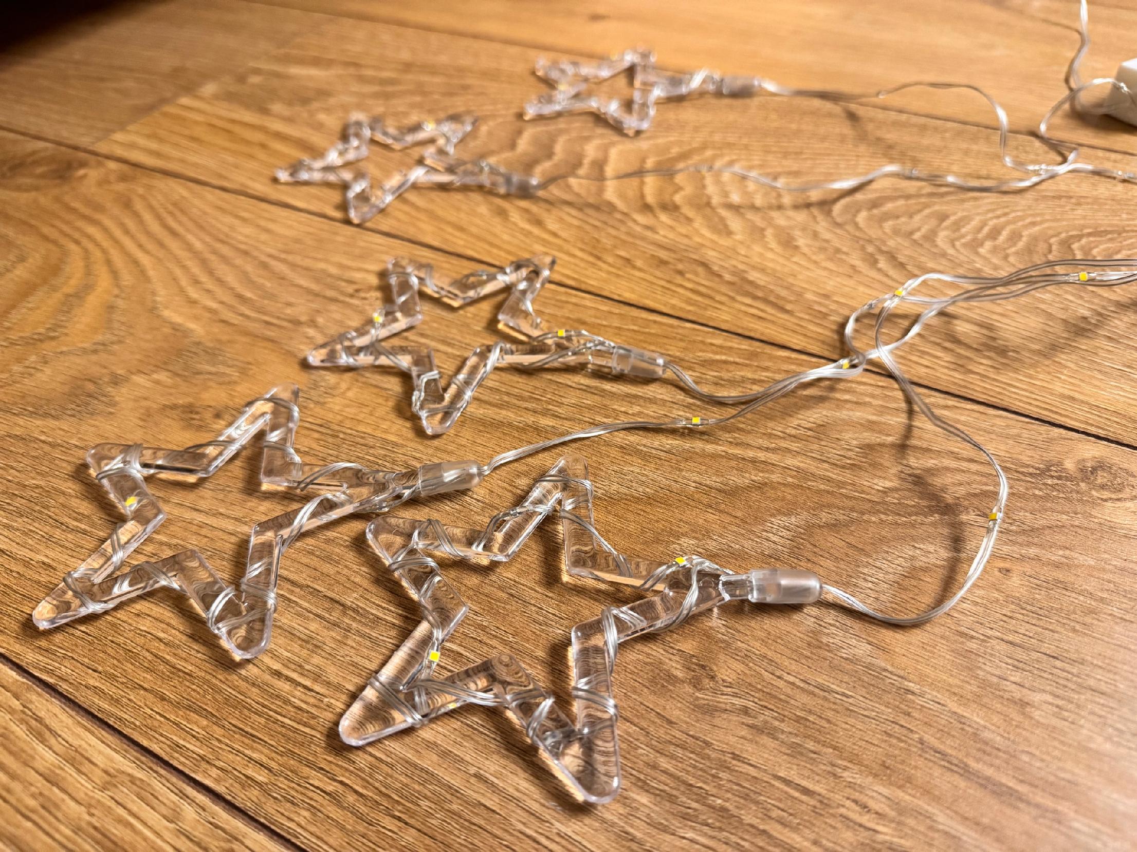 Długość zwisów: duża gwiazdka – 70 cm, mała gwiazdka – 46 cm