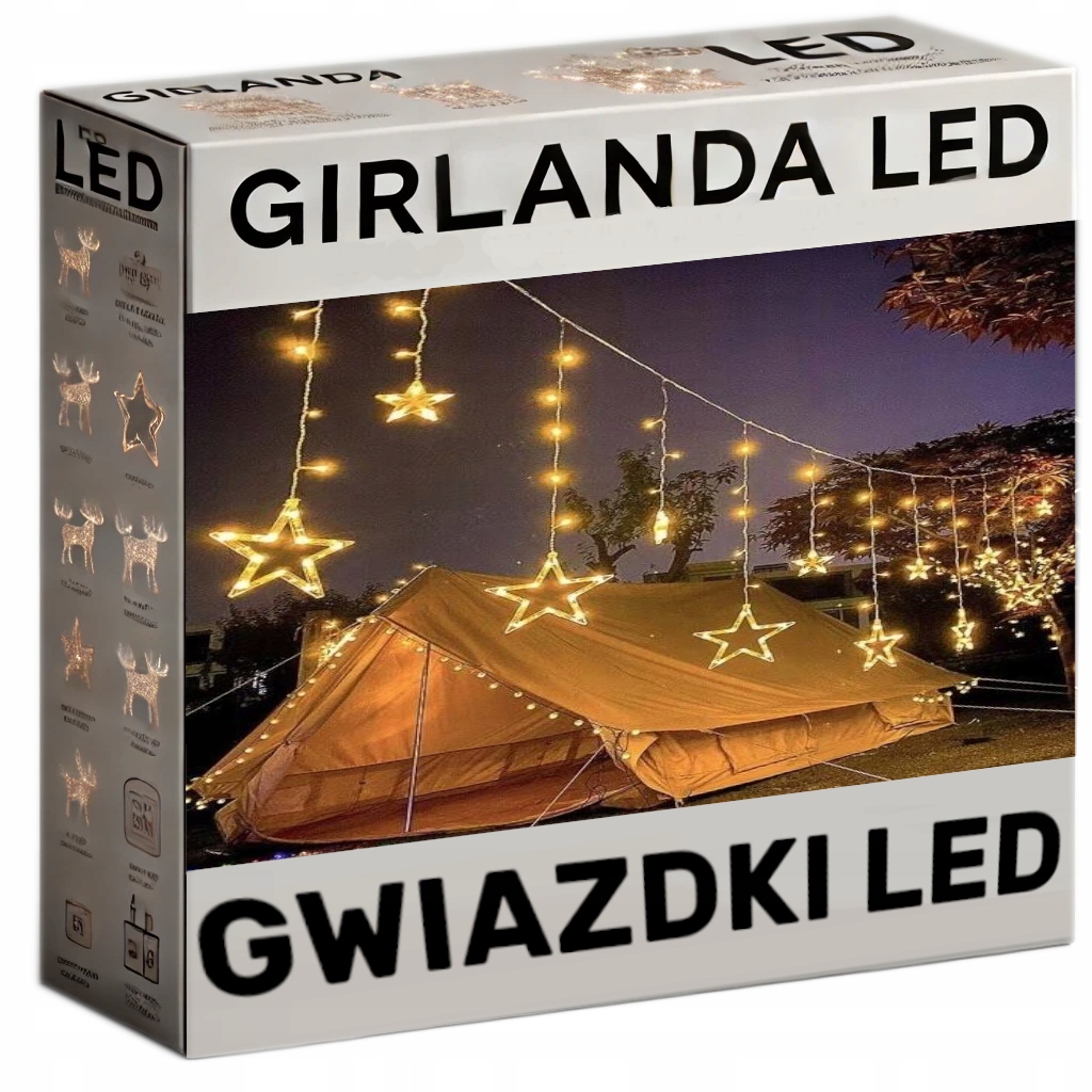 Kurtyna LED Gwiazdki Lampki Choinkowe Wiszące