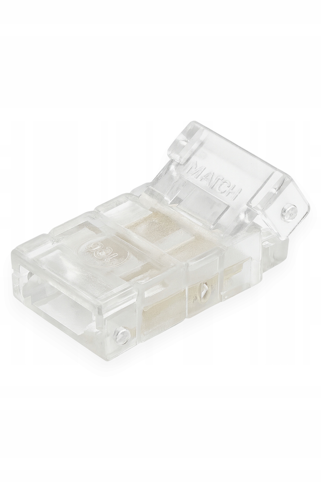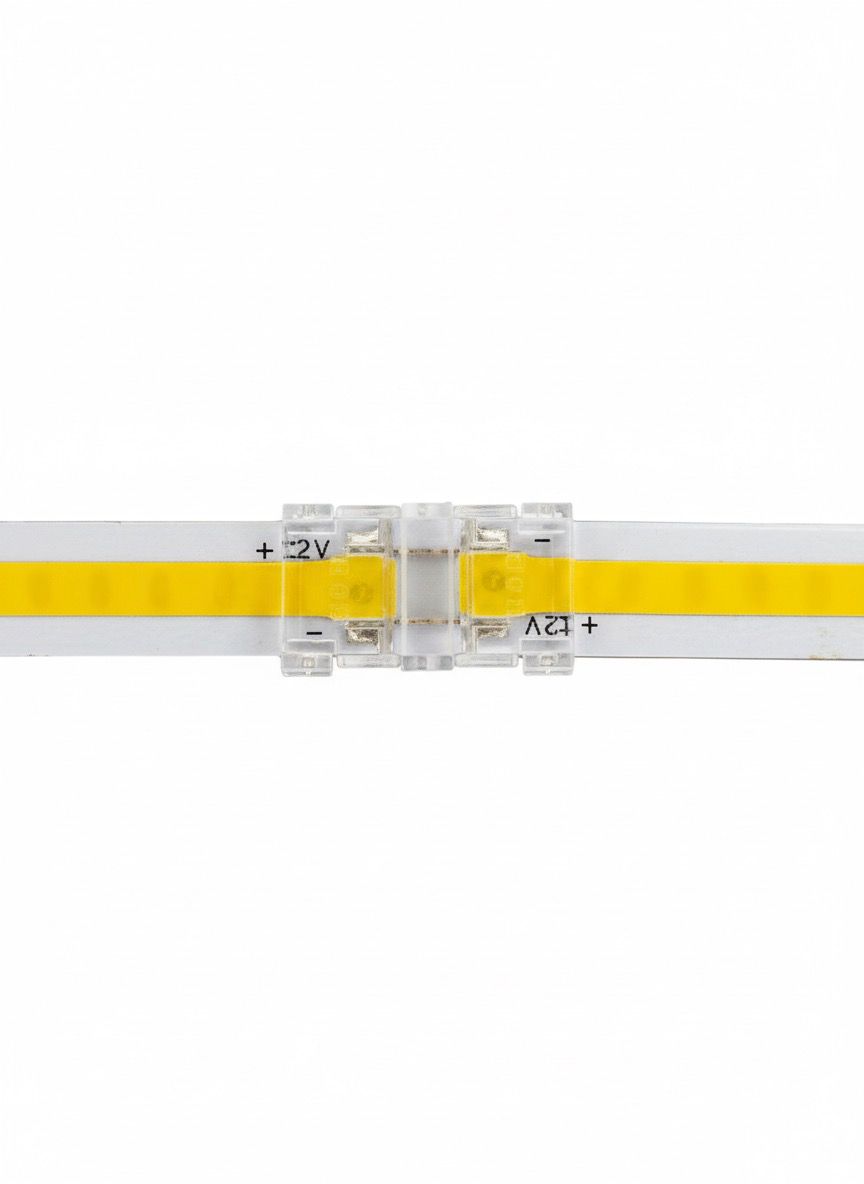 Złączka jest kompatybilna z taśmami SMD i COB 8 mm, zasilanymi napięciem 12V, 24V lub 36V DC. Zapewnia pewne przewodzenie prądu, a jej kompaktowa obudowa z przezroczystego tworzywa gwarantuje estetyczny wygląd instalacji.