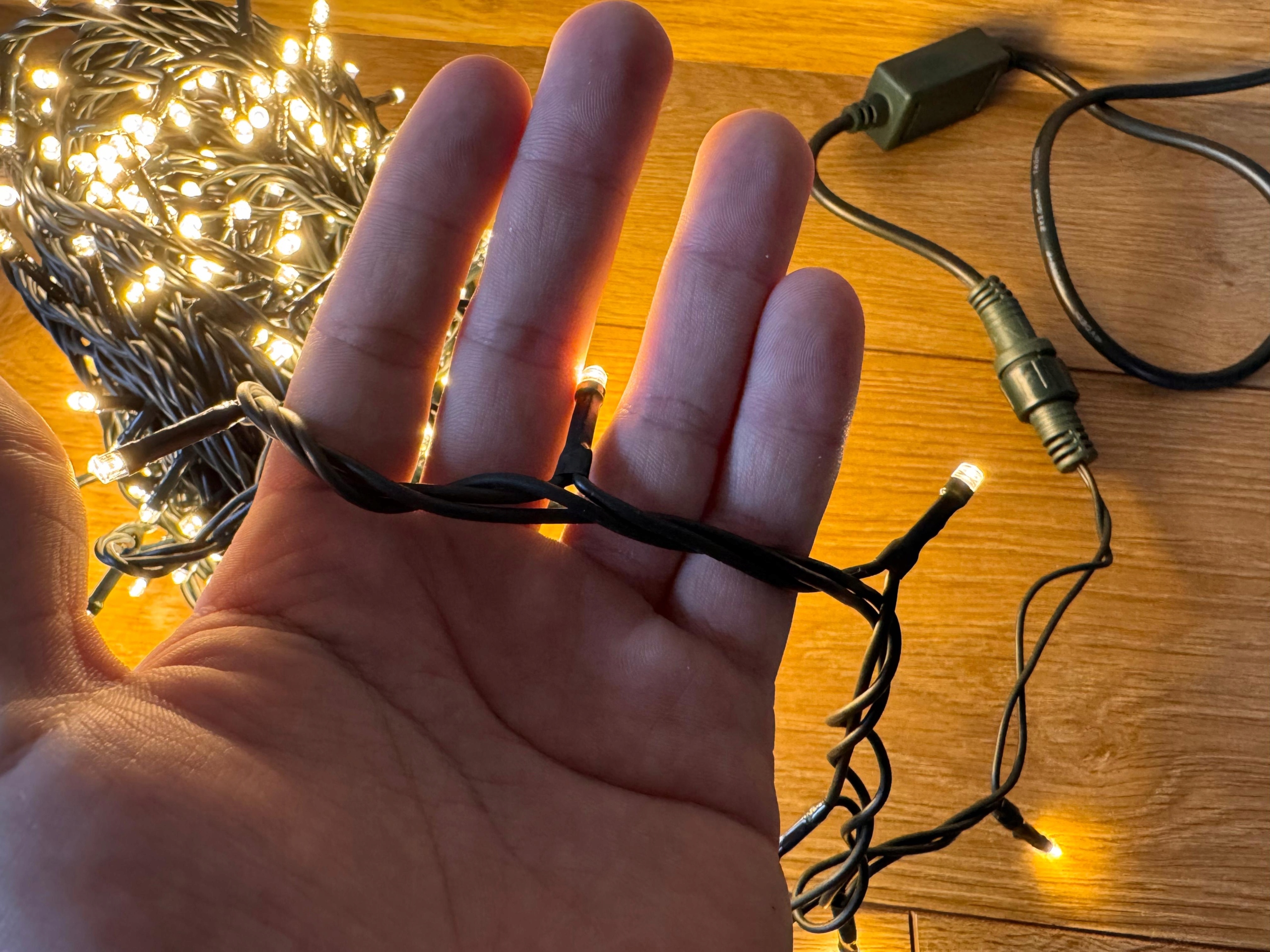 Lampki Choinkowe 300 LED o odcinku świecenia 24 m świecą stałym światłem w barwie biały ciepły. Dają równy, przytulny blask bez migotania – idealny do choinek, balustrad i elewacji. Gruby, gumowy przewód lepiej znosi mróz i zginanie, a IP44 pozwala używać lampek na zewnątrz i wewnątrz. Pobór mocy ok. 4,7 W – jasno i oszczędnie. Zestaw Lampki Choinkowe 300 LED to szybka i pewna dekoracja w naturalnej, ciepłej barwie.