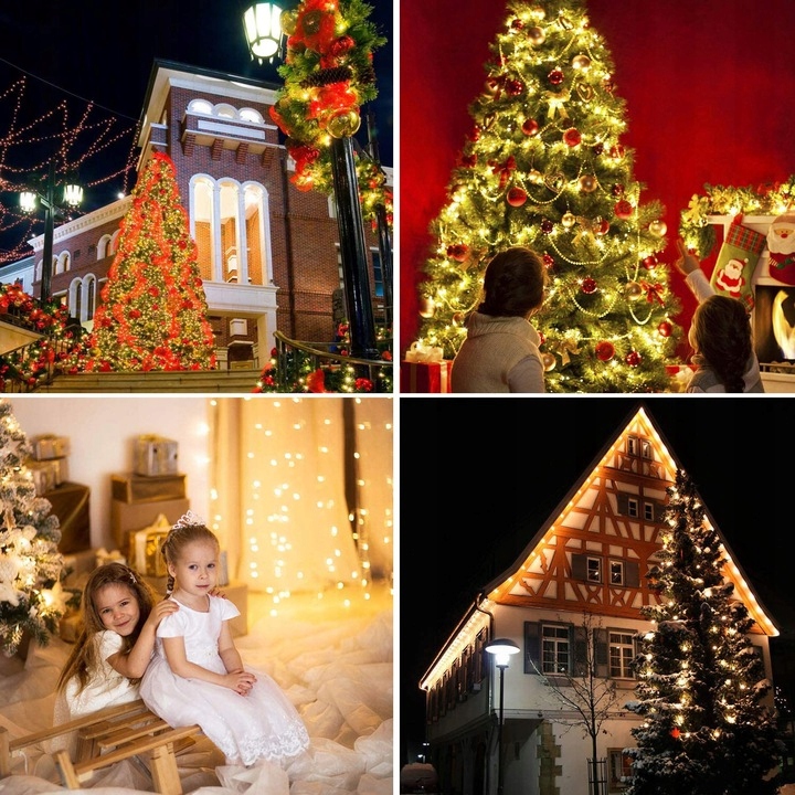 Lampki choinkowe LED z 1000 diodami i długością 72 metrów doskonale nadają się do dużych dekoracji świątecznych, ponieważ pozwalają równomiernie oświetlić choinki, elewacje oraz ogrody. Producent zastosował ciepłą białą barwę światła, dlatego dekoracja tworzy przytulny i elegancki klimat, a jednocześnie pasuje do klasycznych aranżacji świątecznych.