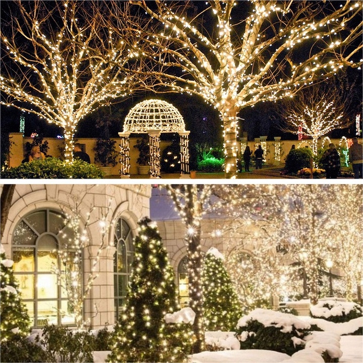 Ciepłe białe światło nadaje dekoracji spokojny charakter, ponieważ nie razi wzroku i nie męczy przy długim użytkowaniu. Dzięki temu lampki sprawdzają się w salonach, na tarasach oraz w ogrodach. Co więcej, równomierne rozmieszczenie 1000 diod zapewnia spójny efekt na całej długości zestawu, a więc dekoracja wygląda profesjonalnie.