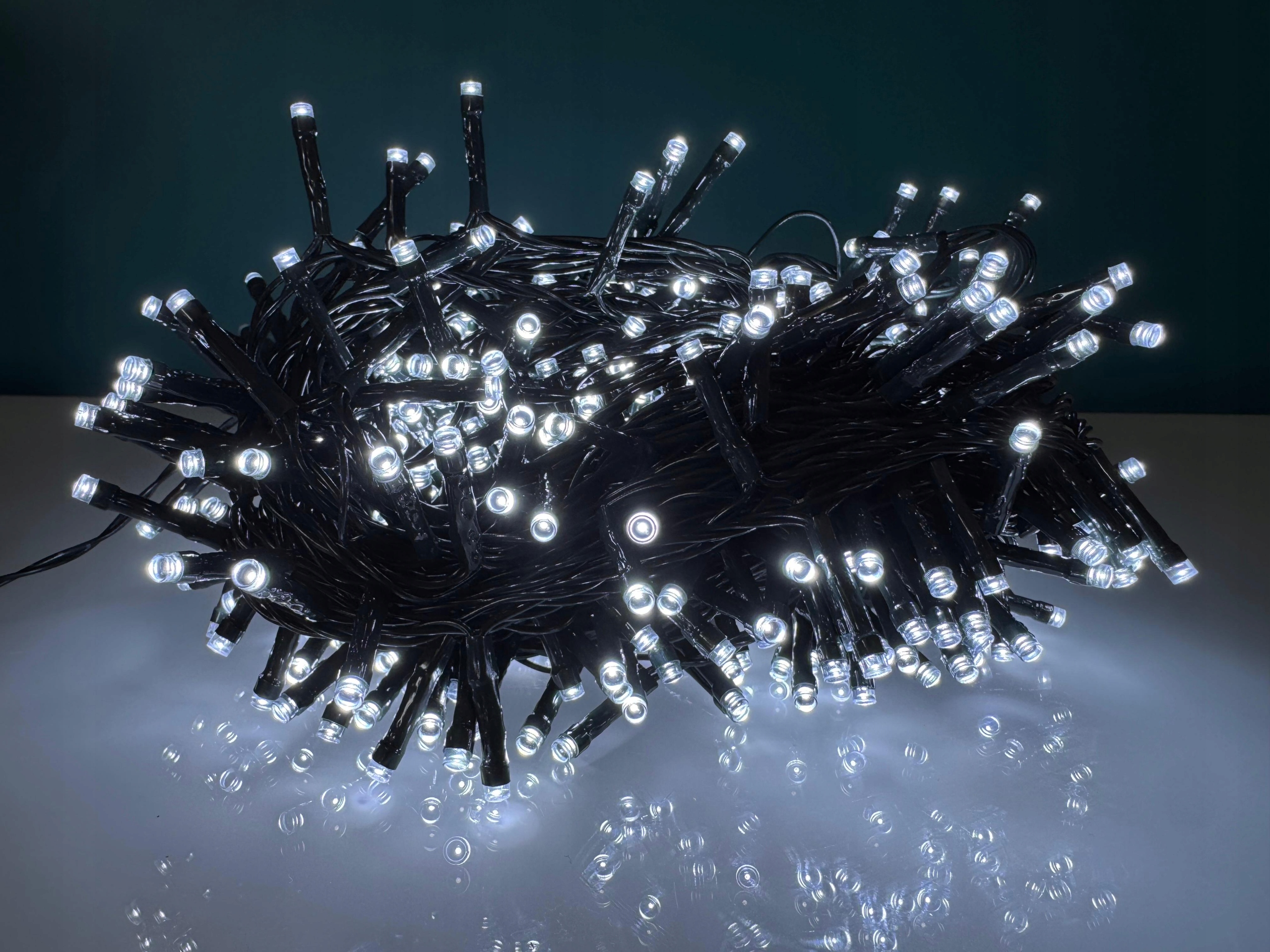 Lampki choinkowe stałe światło 500 LED 33 m białe zimne IP44 to kompletne i niezawodne oświetlenie świąteczne. Zestaw zawiera 30 m części świecącej oraz 3 m kabla zasilającego, co daje aż 33 m dekoracyjnych lampek.