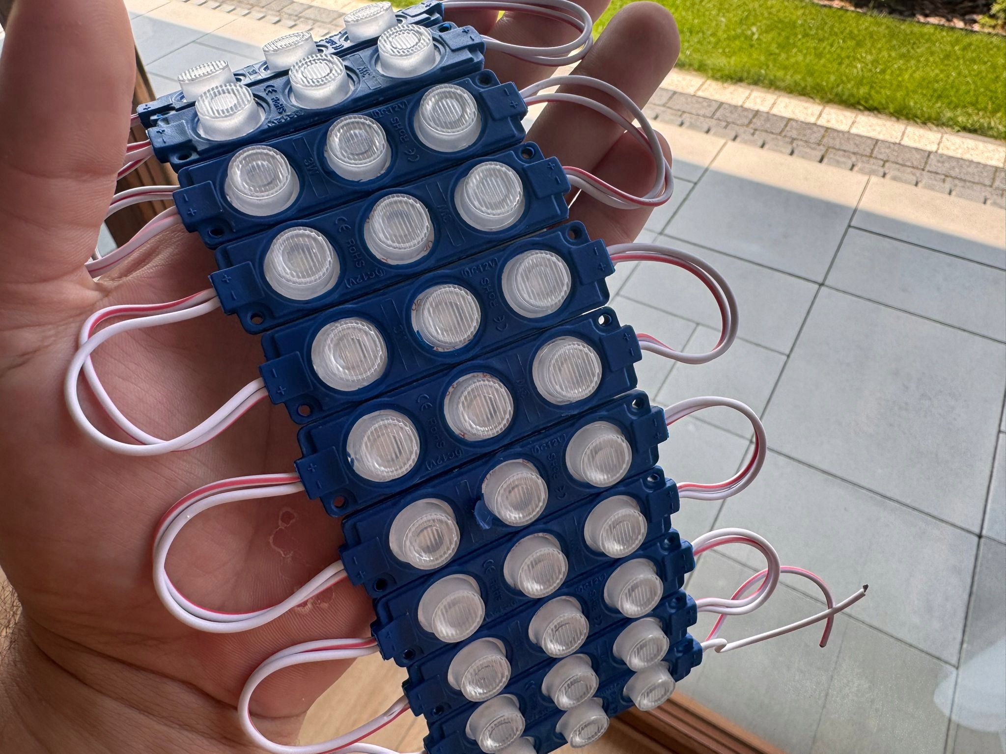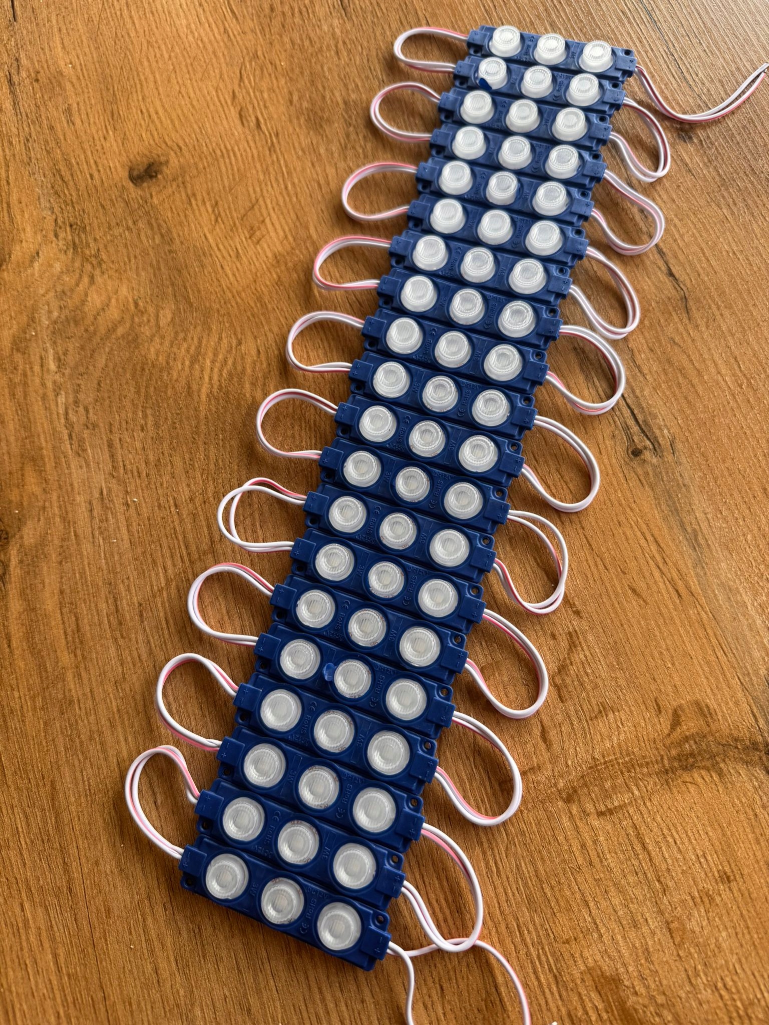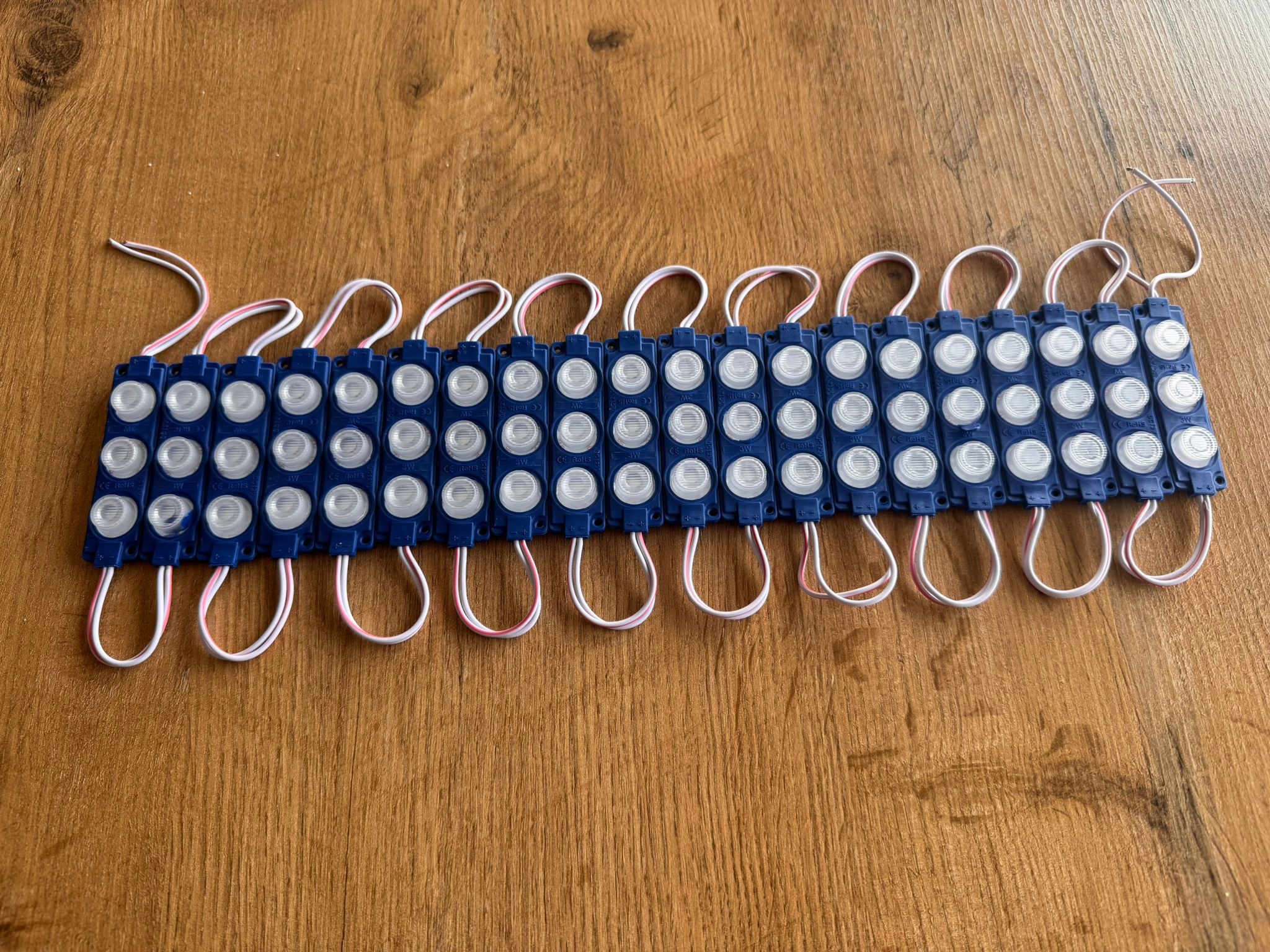 Ponadto moduły można łączyć przez lutowanie, co daje możliwość tworzenia dłuższych linii świetlnych.