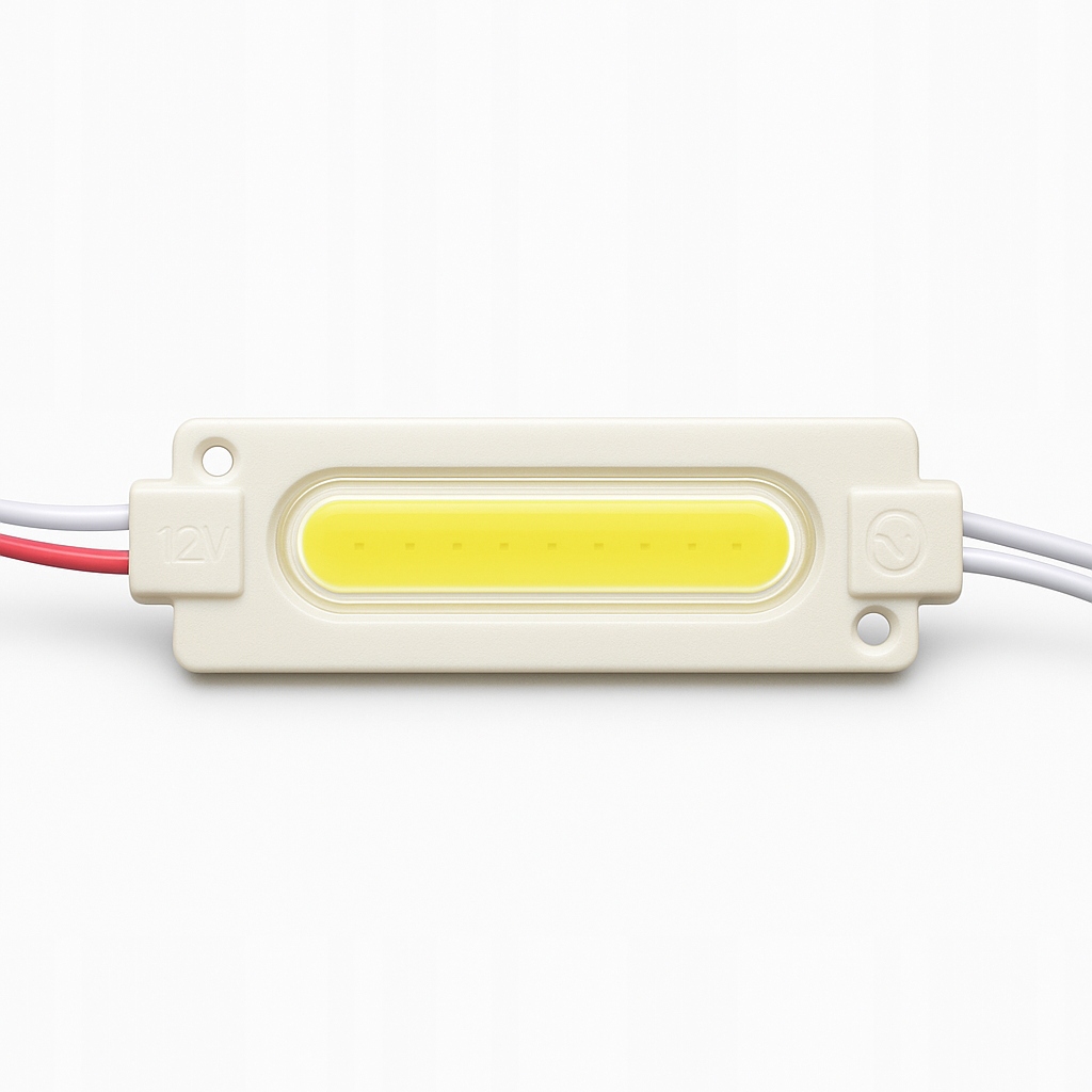Moduł LED COB 12V ciągły IP65 3W ciepły to nowoczesne i energooszczędne źródło światła, które emituje równomierny strumień o barwie biała ciepła 3000K. Dzięki technologii COB (Chip on Board) moduł świeci jednolicie, bez efektu pojedynczych punktów, co daje estetyczny efekt świetlny. To idealne rozwiązanie do dekoracji wnętrz, reklamy świetlnej, kasetonów, liter 3D czy oświetlenia meblowego.