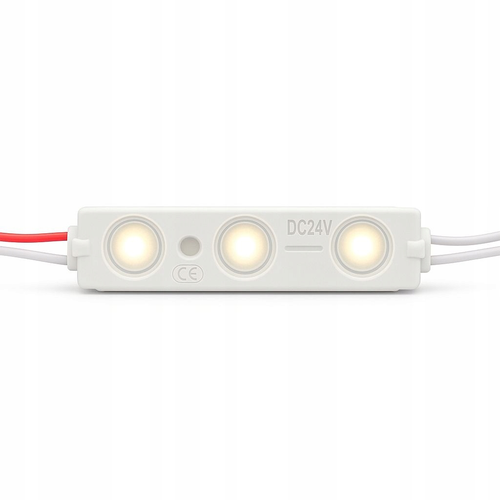 Zastosowana technologia LED gwarantuje oszczędność energii – jeden moduł pobiera jedynie 1,4W, a jednocześnie generuje strumień świetlny ok. 108 lumenów. Wysoka klasa szczelności IP65 sprawia, że moduł LED neutralny 24V jest odporny na kurz i wilgoć, dzięki czemu można go używać na zewnątrz, np. do podświetlania szyldów czy elewacji.