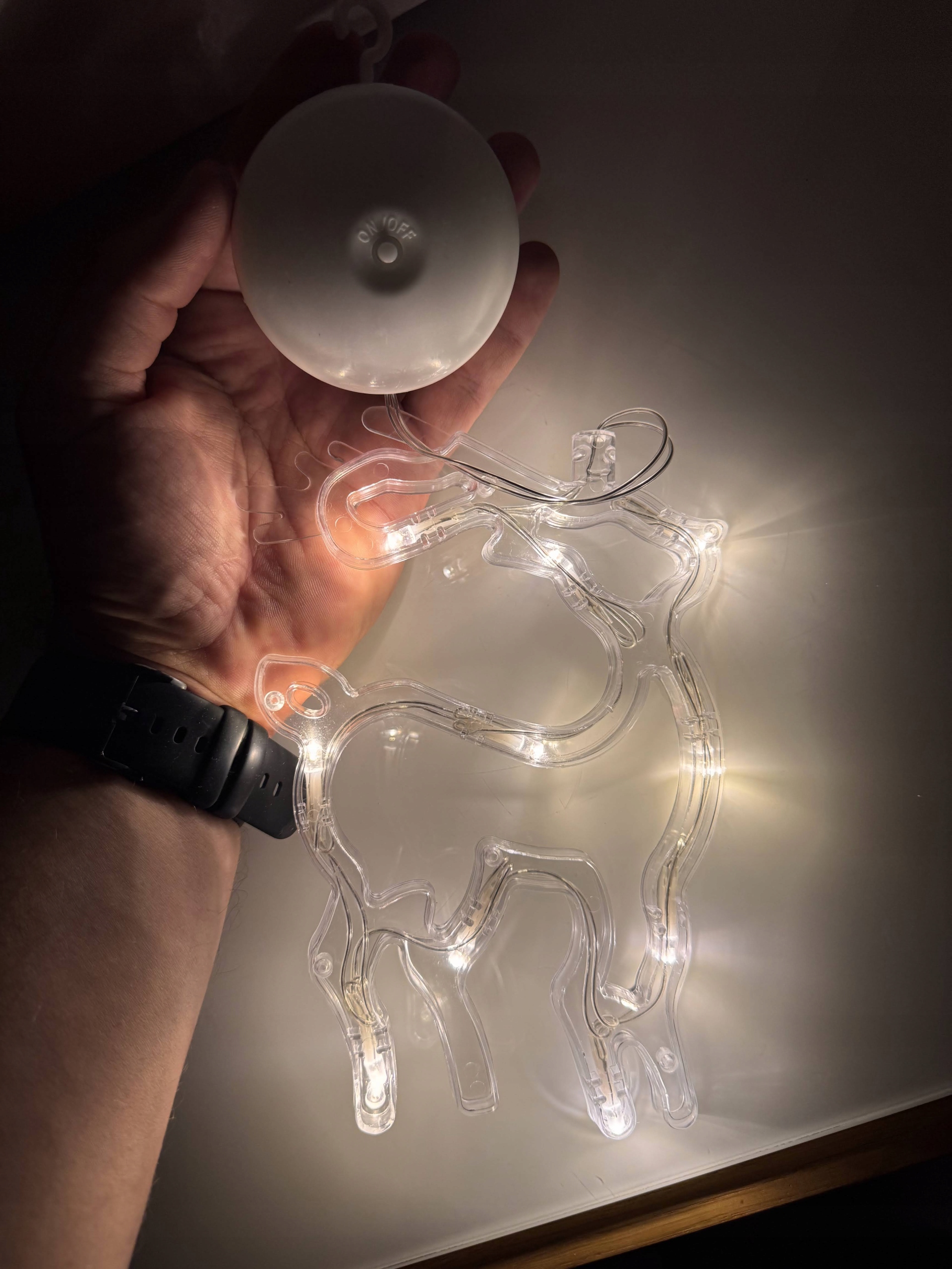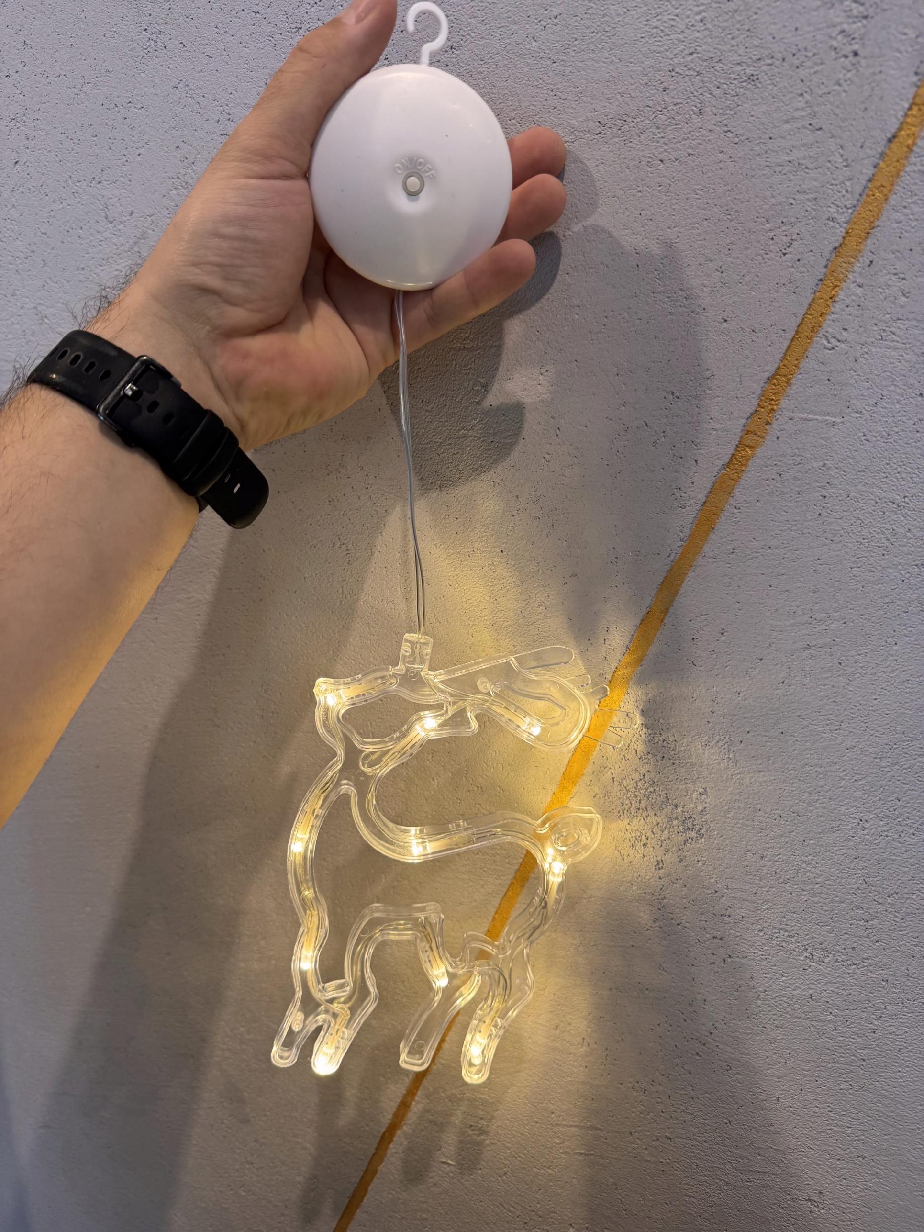 Renifer LED 10 LED Ozdoba Okienna Ciepły Biały Na Baterie Przyssawka Haczyk