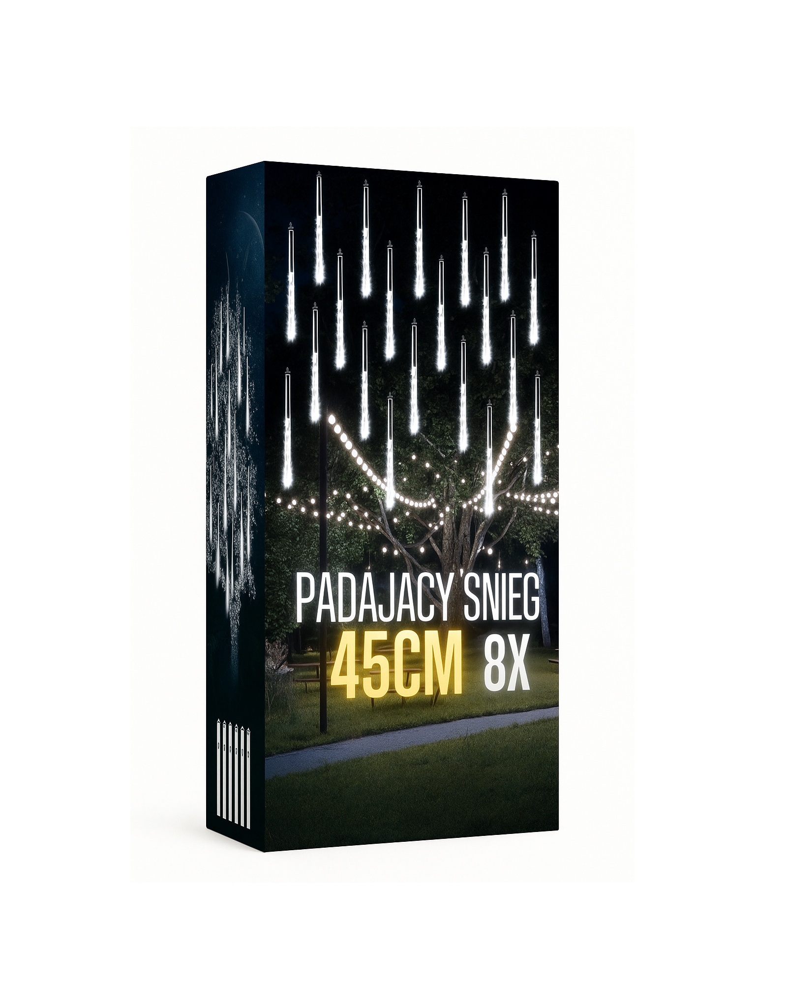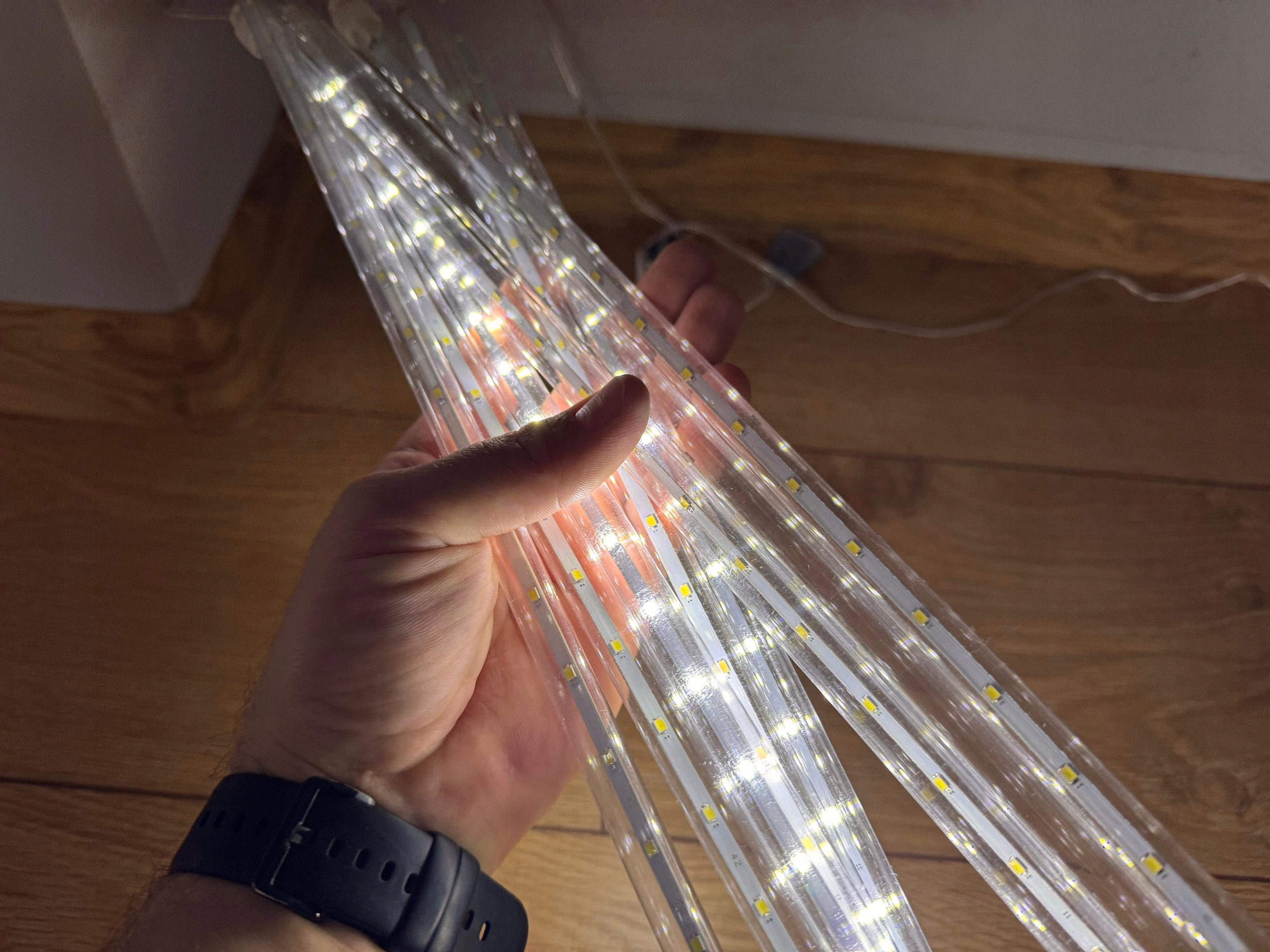 Sople LED Meteory 45 cm w barwie białej zimnej to wyjątkowe oświetlenie świąteczne, które tworzy realistyczny efekt spadającego śniegu.