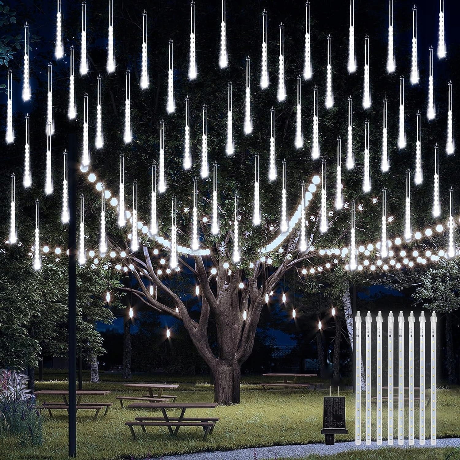 Sople LED Meteory 45 cm 8 Tub Białe Zimne IP44