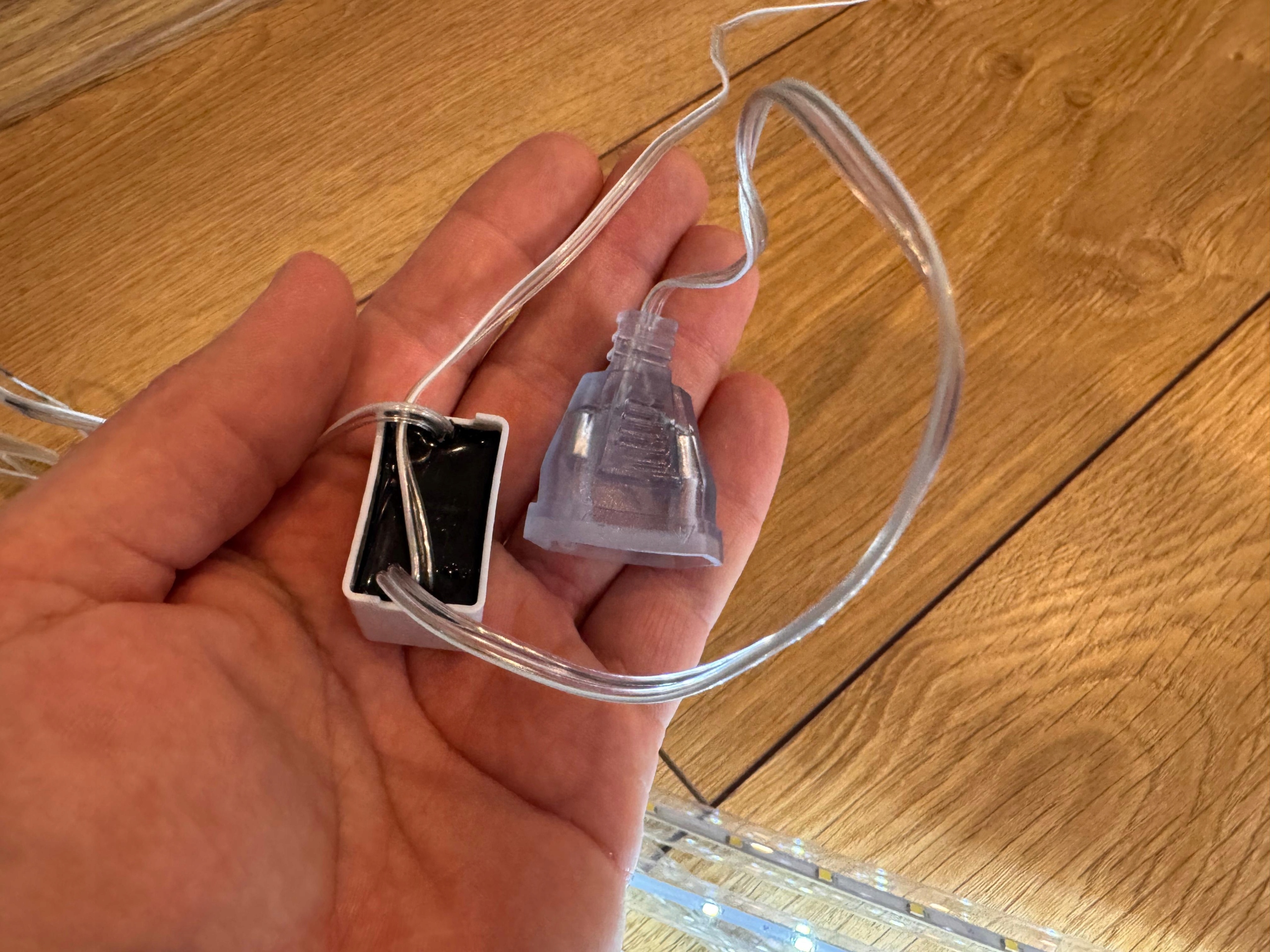 ✅ Płaska złączka 2-pin przy początku zestawu (ok. 1 m od wtyczki)