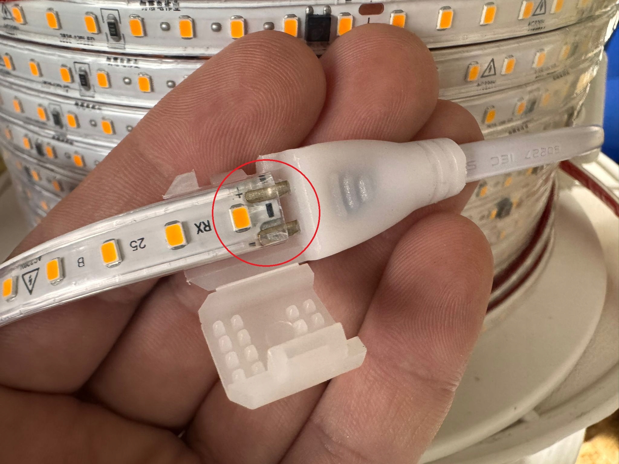 ⚠️ Jeśli taśma nie świeci, obróć złączkę o 180° i spróbuj ponownie.