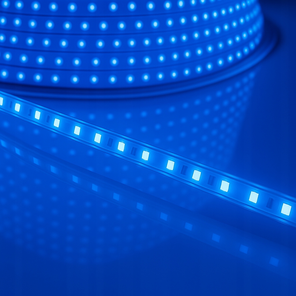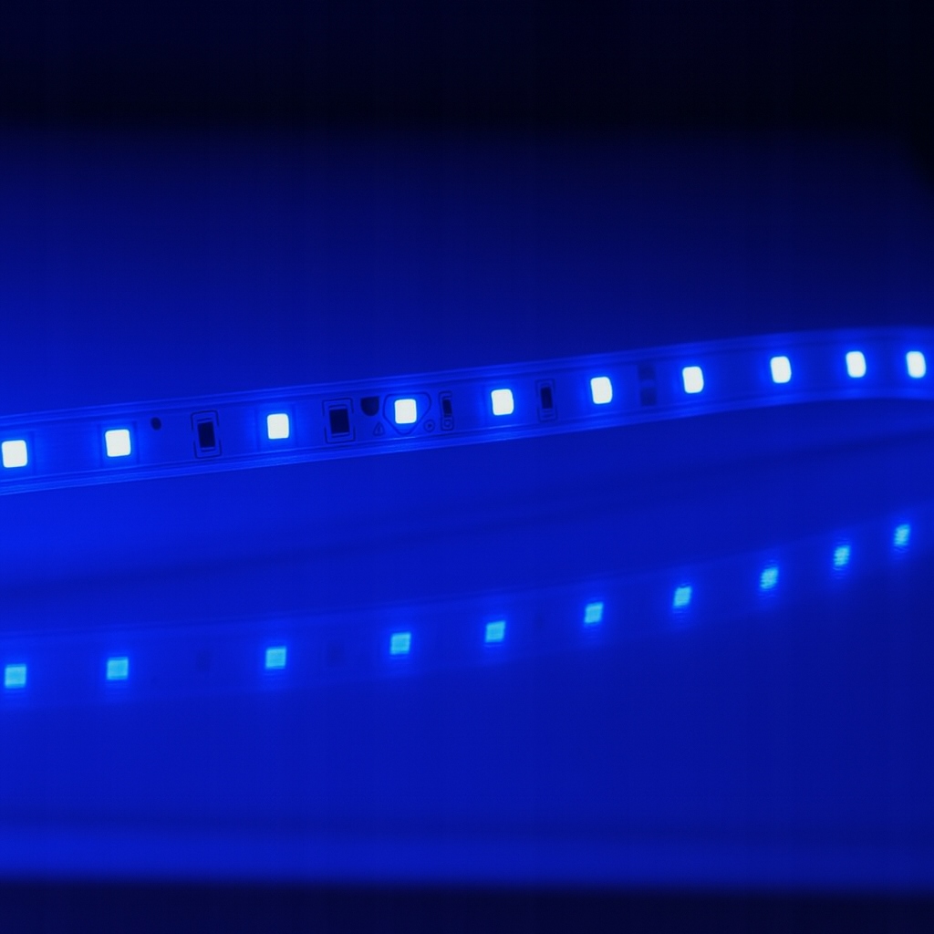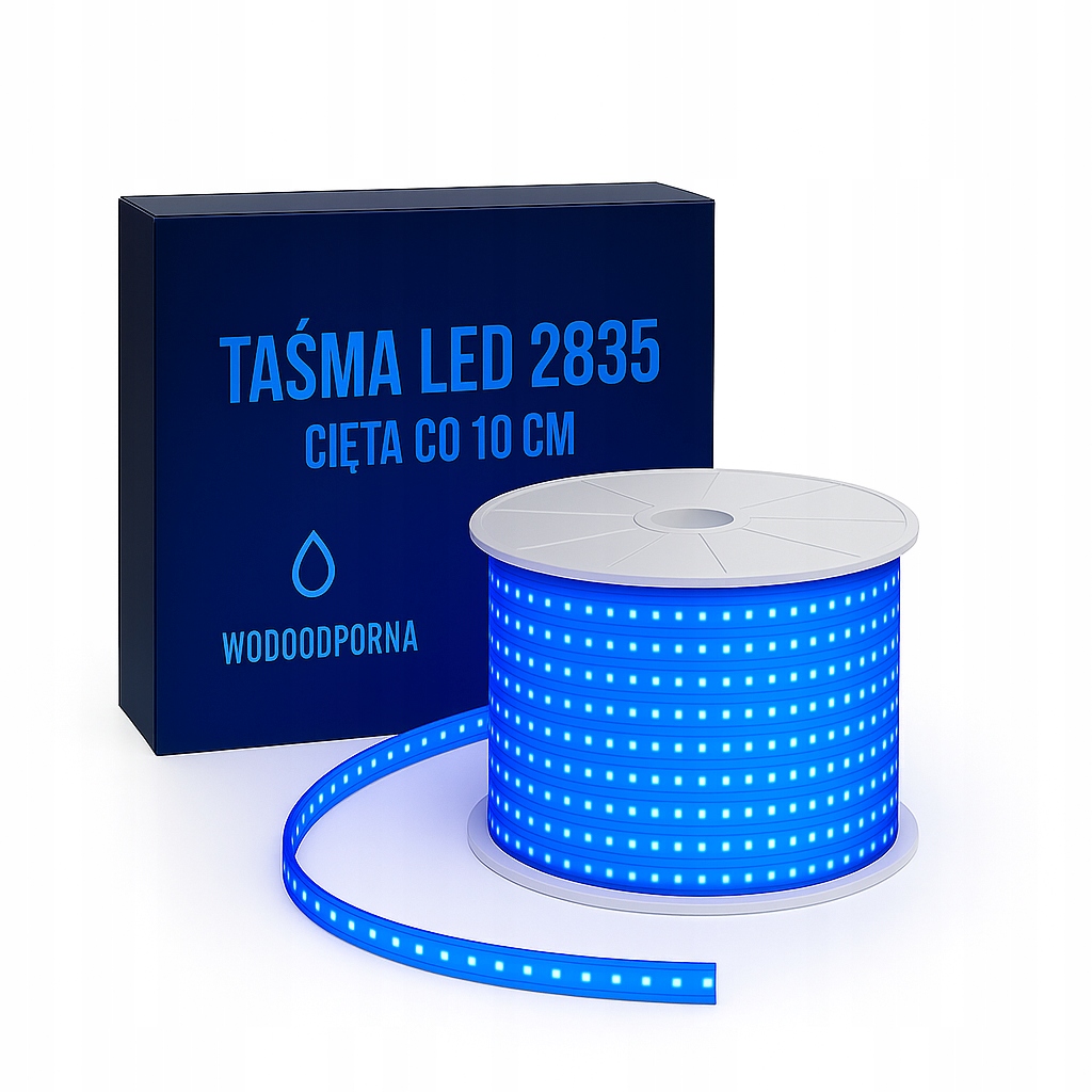 Możliwość cięcia co 10 cm pozwala idealnie dopasować długość do własnych potrzeb, a diody SMD 2835 zapewniają intensywne, jednolite niebieskie światło.