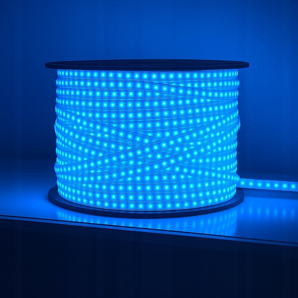 Taśma LED Niebieska 2835 230V 10W IP67 to nowoczesne i energooszczędne rozwiązanie oświetleniowe, które sprawdzi się w domu, ogrodzie, a także w zastosowaniach komercyjnych. Dzięki wysokiej jakości diodom SMD 2835 taśma świeci jednolicie i intensywnie, bez efektu widocznych punktów LED. Zasilanie bezpośrednio z sieci 230V sprawia, że do działania nie potrzebuje dodatkowego zasilacza ani stabilizatora – wystarczy podłączyć ją za pomocą przewodu zasilającego dostępnego w naszej ofercie.