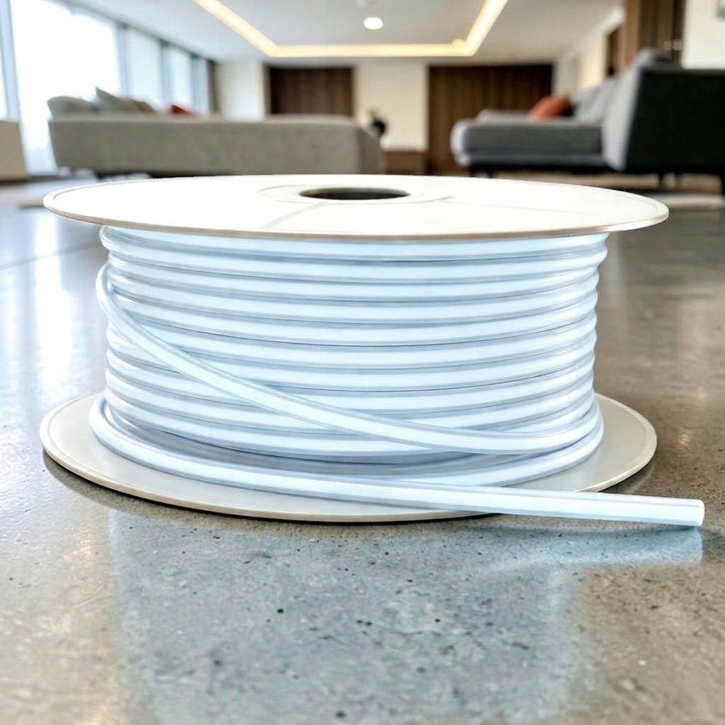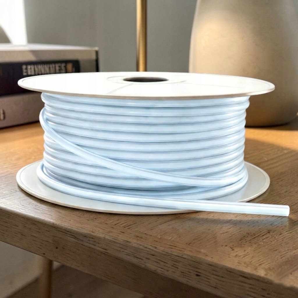 Taśma NEON LED COB 24V 10×5 mm w barwie białej zimnej 6000K zapewnia jednolitą linię światła bez widocznych punktów LED. Technologia COB oraz mleczna osłona silikonowa równomiernie rozpraszają światło. Dzięki temu instalacja wygląda estetycznie i nowocześnie. Ponadto klasa szczelności IP68 umożliwia montaż zarówno wewnątrz, jak i na zewnątrz budynków.