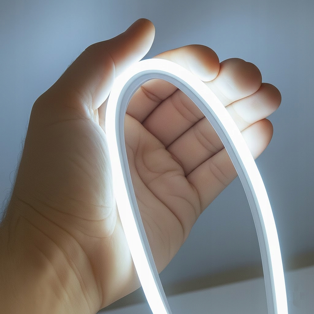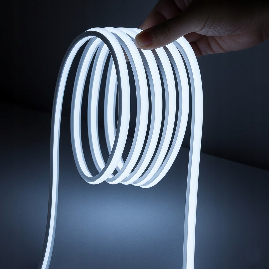 Neon został wykonany w technologii SMD 2835 i posiada aż 240 diod LED na metr, dlatego światło jest intensywne i równomierne. Z tego powodu nie powstają przerwy ani cienie. Zimna biel 6000K zapewnia wyraźny, techniczny efekt, który doskonale podkreśla kształty, napisy i kontury.