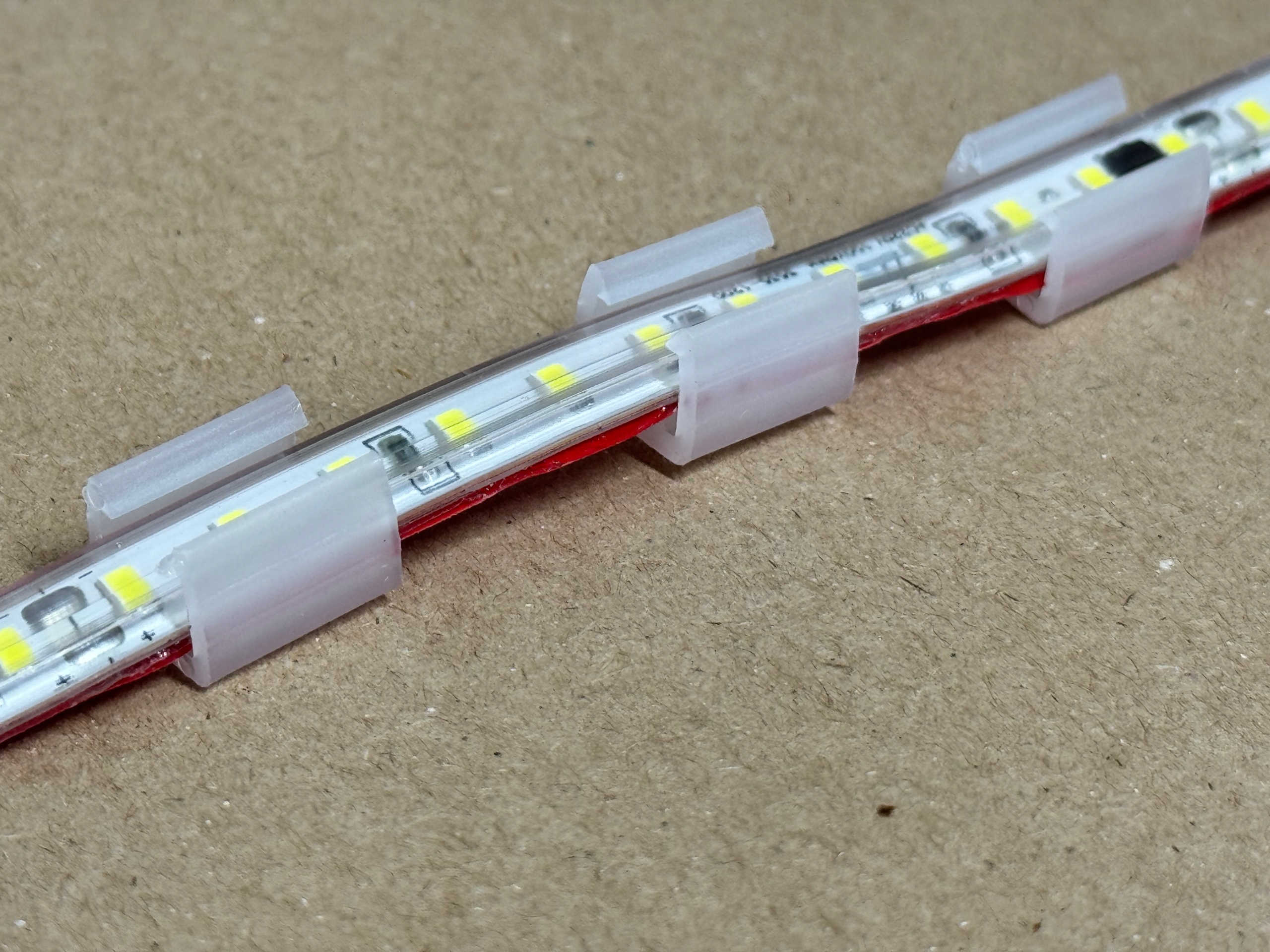 Uchwyt montażowy do taśmy LED jest mały, ale bardzo praktyczny. Ułatwia estetyczne prowadzenie instalacji świetlnej i chroni taśmy przed odklejaniem się. Dzięki swojej płaskiej konstrukcji dobrze przylega do podłoża i sprawdza się zarówno w domu, jak i w profesjonalnych instalacjach.