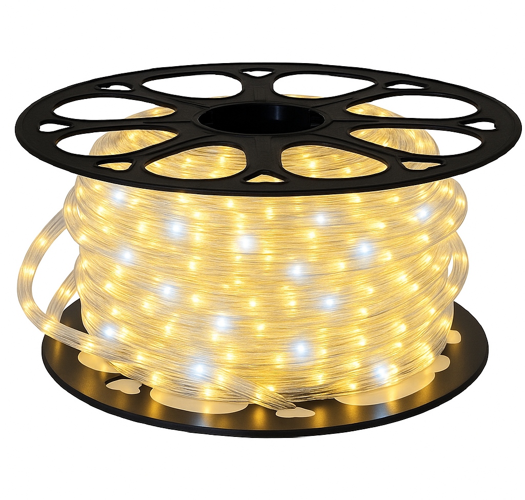 Wąż świetlny LED Flash biały ciepły 50m IP44 okrągły to profesjonalne źródło światła dekoracyjnego, idealne do wnętrz i zastosowań zewnętrznych. Dzięki połączeniu stałego światła w barwie białej ciepłej z delikatnym efektem flash w barwie białej zimnej uzyskasz wyjątkowy efekt wizualny, który przyciąga uwagę i tworzy niepowtarzalny klimat.