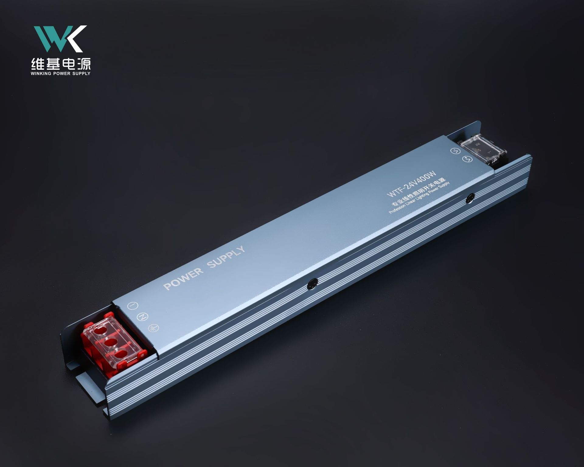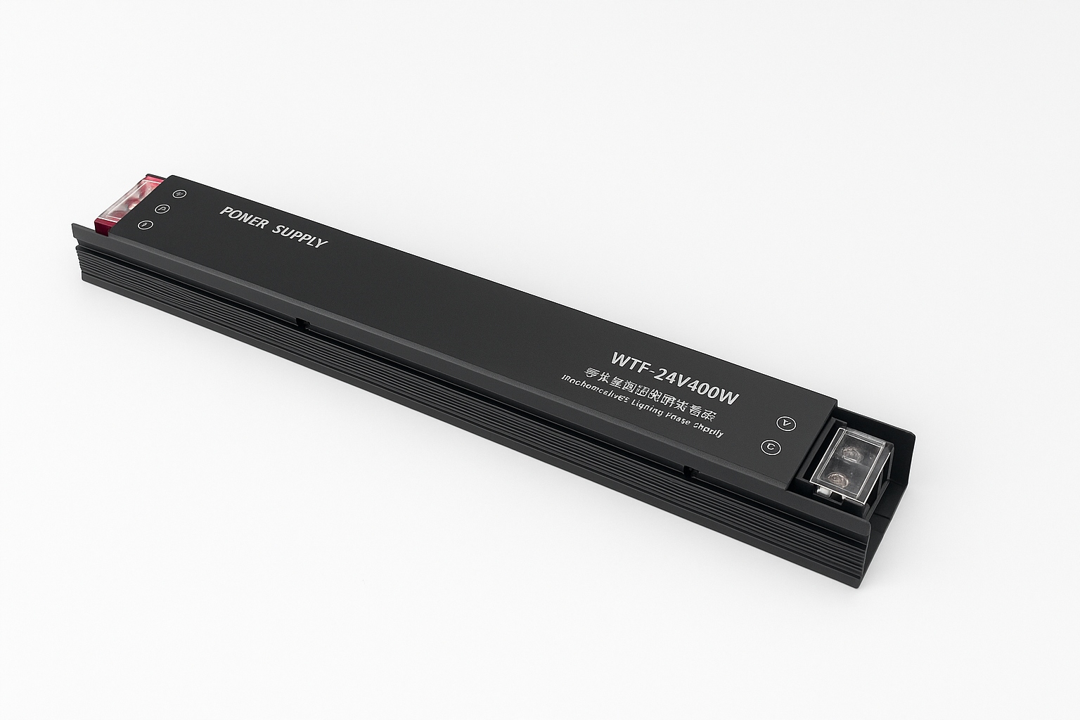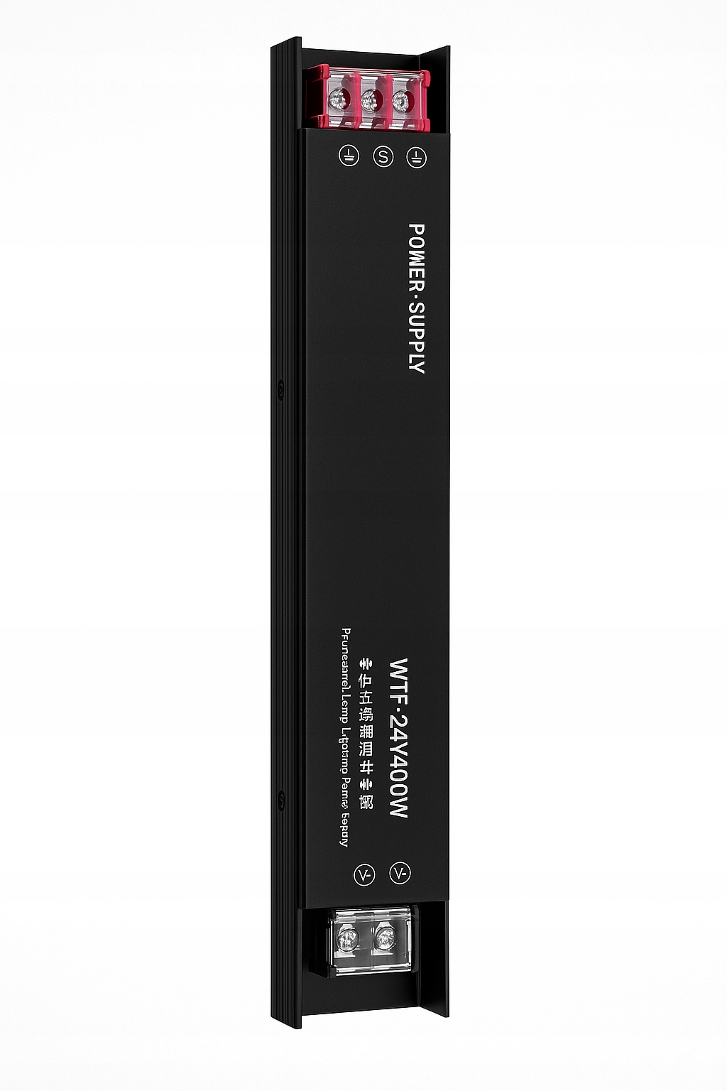 Zasilacz LED 24V 400W Slim WTF-24V400W to profesjonalny, aluminiowy zasilacz klasy premium, przeznaczony do taśm LED, neonów LED oraz oświetlenia architektonicznego 24V DC. Jego smukła obudowa typu SLIM umożliwia montaż w miejscach o ograniczonej przestrzeni – w profilach aluminiowych, sufitach podwieszanych, szafkach i zabudowach meblowych.
