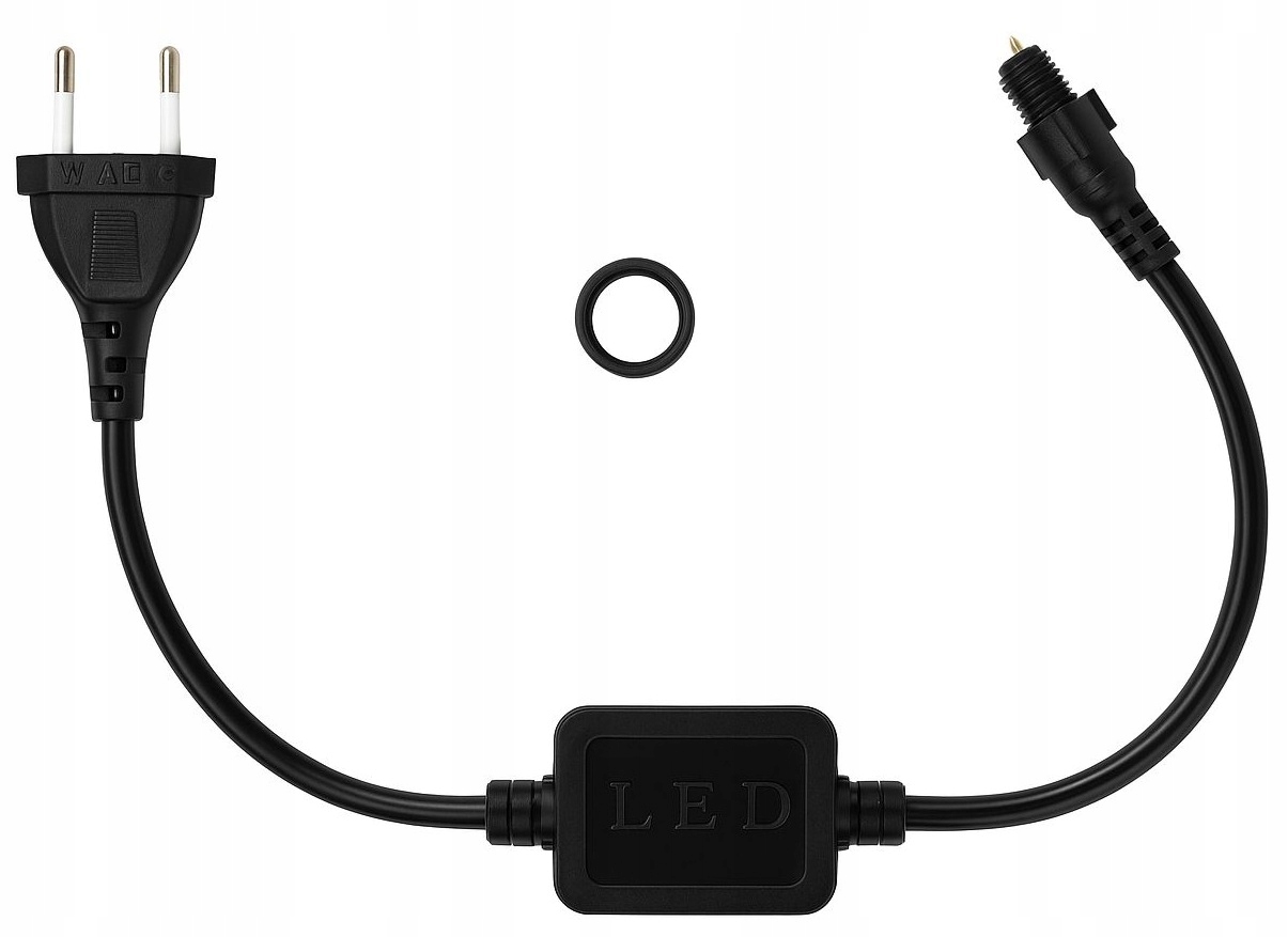 Zestaw zawiera przewód zasilający z wbudowanym stabilizatorem, który po podłączeniu do sieci 230V pozwala natychmiast uruchomić instalację. Co ważne, produkt jest gotowy do użycia, dlatego nie wymaga lutowania ani dodatkowych elementów.