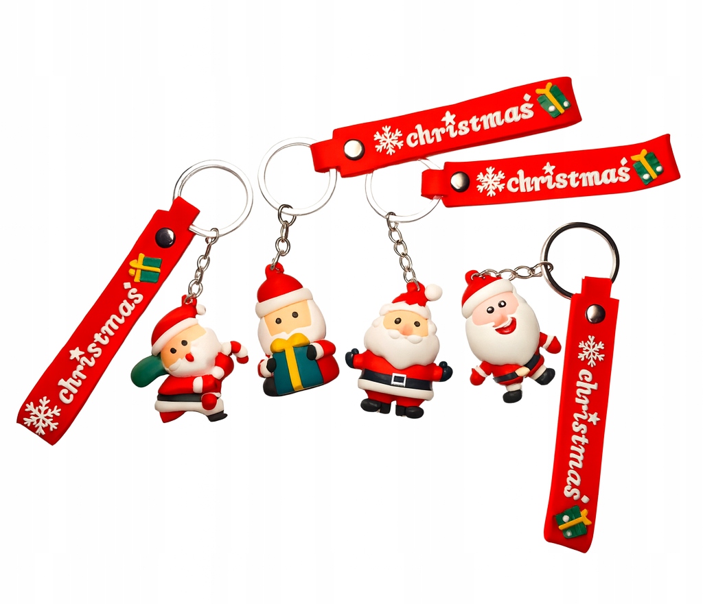 Każdy brelok posiada świąteczny pasek z napisem Christmas, motyw śnieżynki oraz kolorowy akcent prezentowy, dlatego całość wygląda spójnie i bardzo świątecznie. Co więcej, breloki są wykonane z miękkiego, przyjemnego w dotyku tworzywa, a jednocześnie są lekkie i wygodne w codziennym użytkowaniu.
