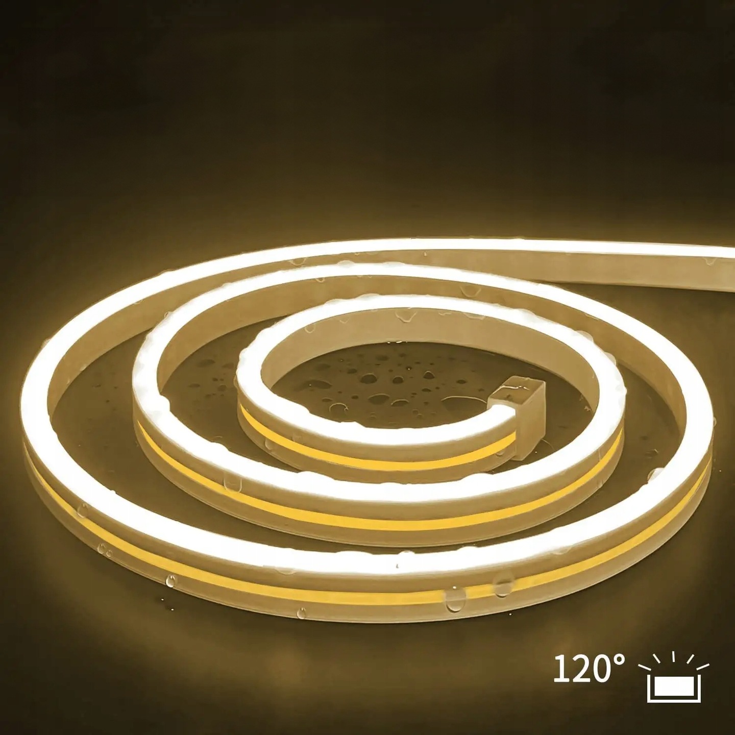 Neon jest elastyczny, więc łatwo dopasujesz go do mebli i krawędzi. Taśma posiada również miejsca cięcia co ok. 8 mm, dlatego możesz skrócić ją do potrzebnej długości. Silikonowa powłoka dodatkowo chroni taśmę i poprawia wygląd światła.
