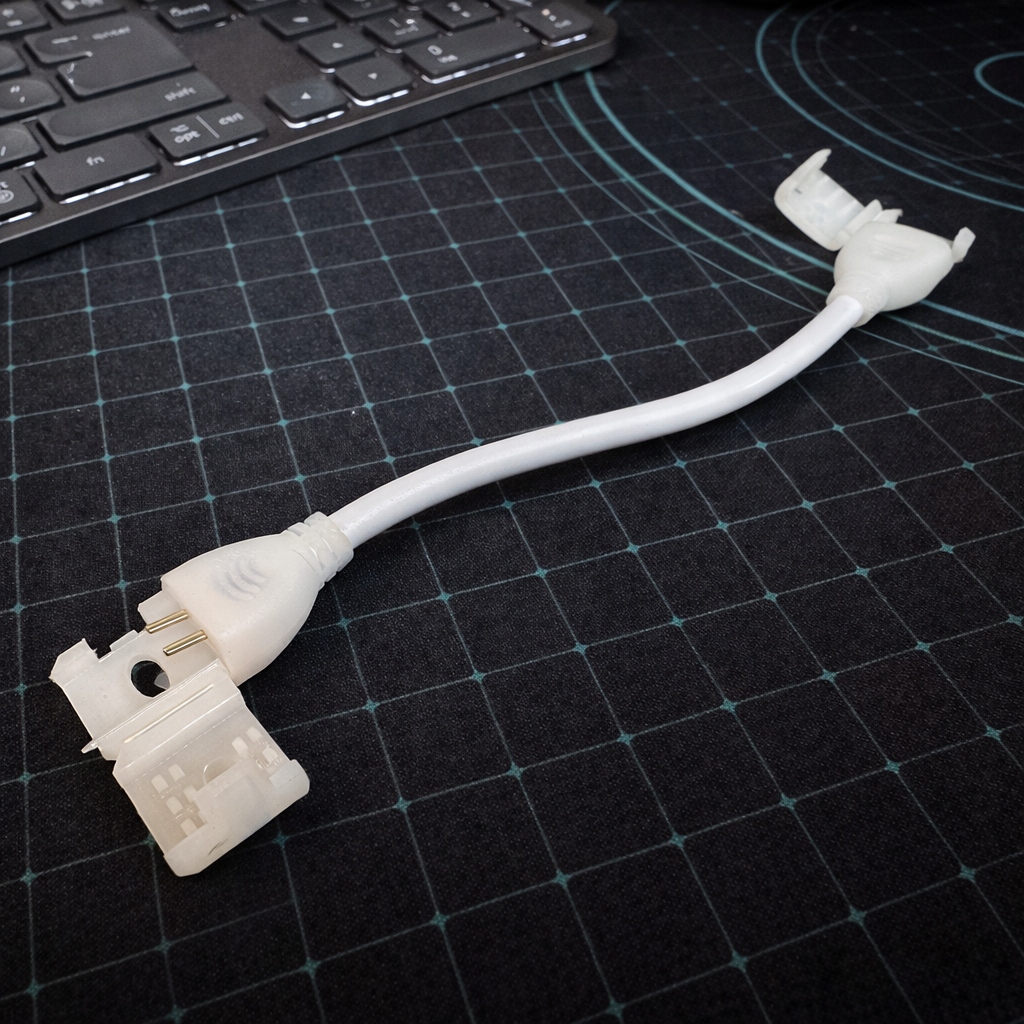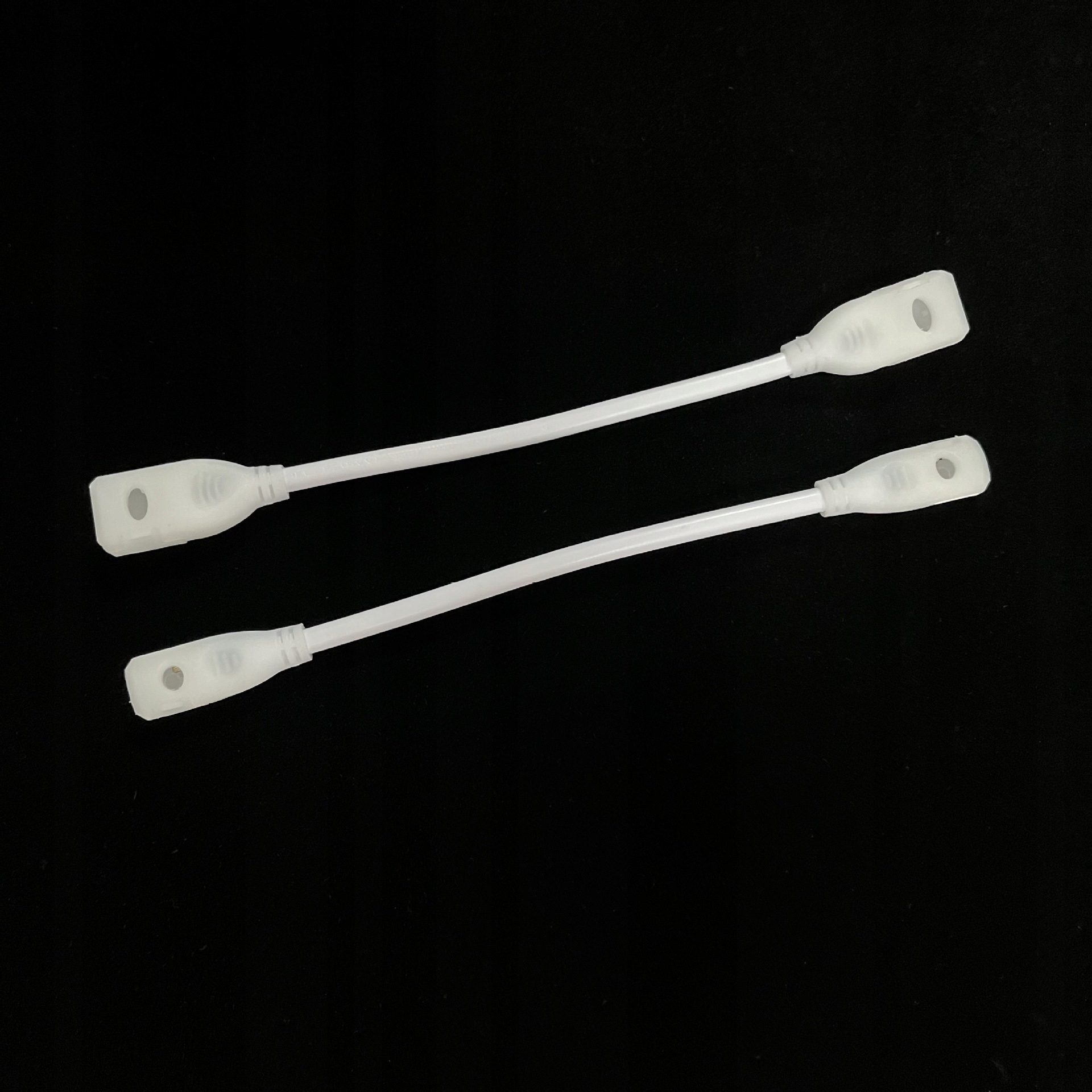 Elastyczny przewód o długości około 20–30 cm pozwala swobodnie łączyć odcinki taśmy LED. Dzięki temu możesz tworzyć bardziej złożone instalacje świetlne. To rozwiązanie sprawdza się w projektach dekoracyjnych, reklamowych oraz architektonicznych.