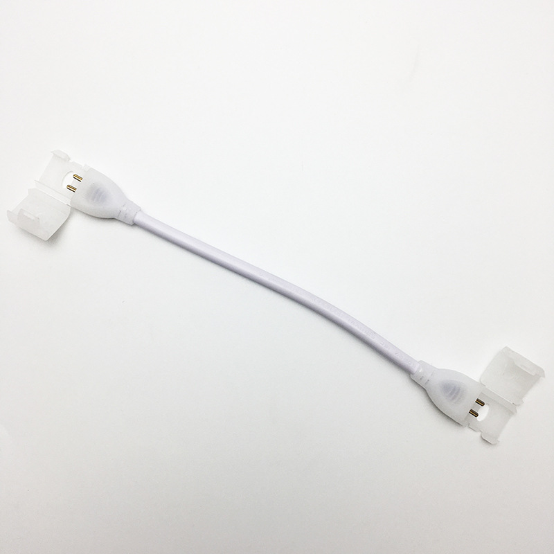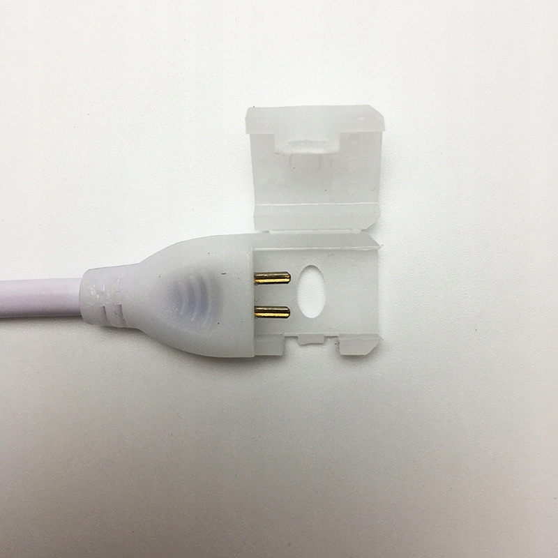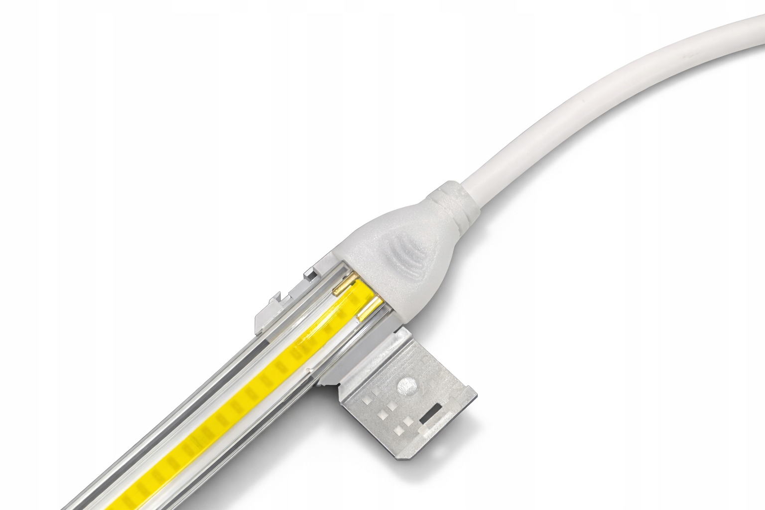 Złączka elastyczna do taśmy COB Neon LED 12×7 mm 230V umożliwia szybkie i bezpieczne łączenie odcinków oświetlenia LED. Dzięki temu instalację wykonasz bez lutowania i bez specjalistycznych narzędzi. Elastyczny przewód ułatwia prowadzenie taśmy, dlatego bez problemu ominiesz narożniki oraz przeszkody. Ponadto precyzyjne piny zapewniają stabilny kontakt elektryczny.