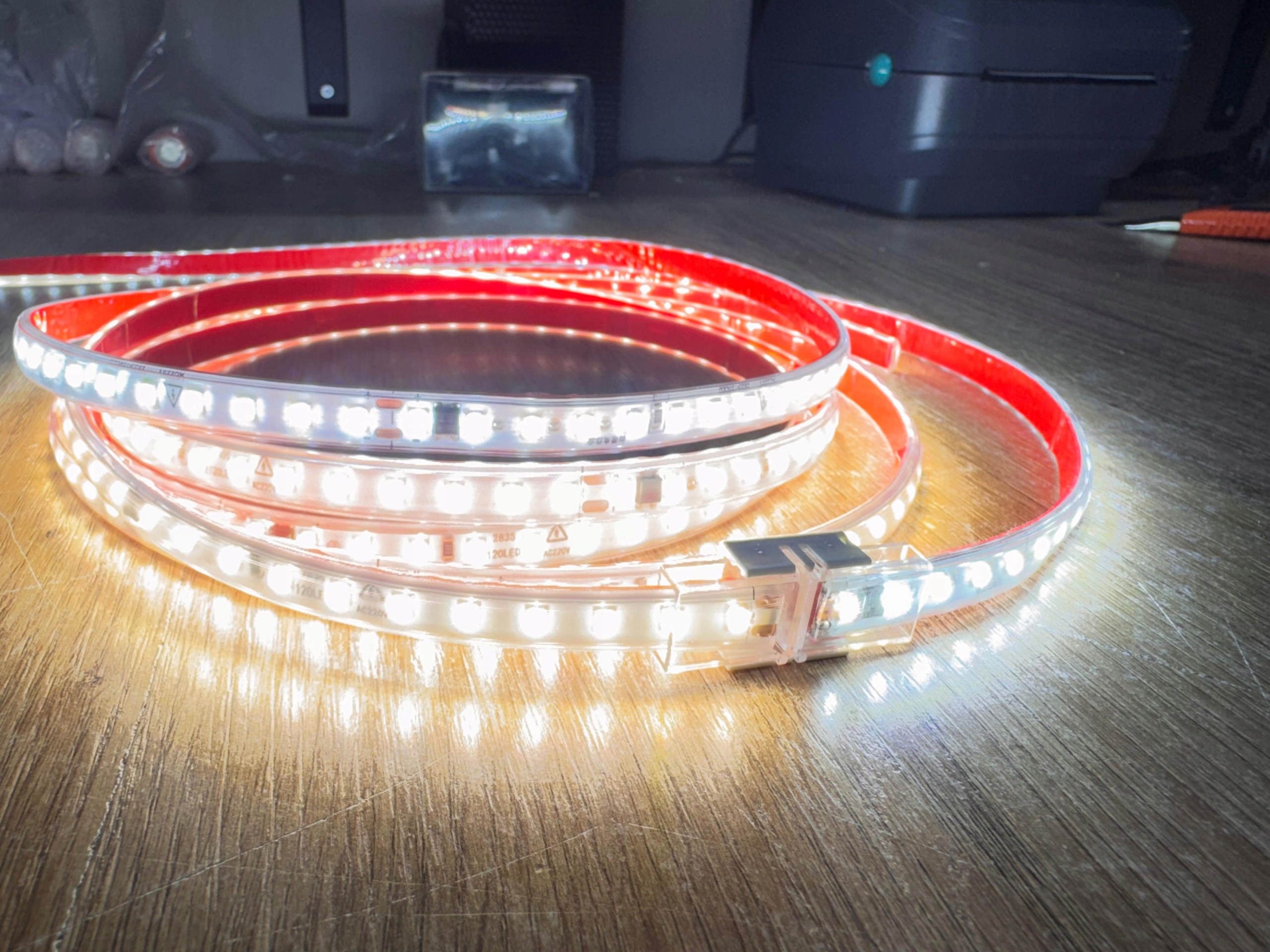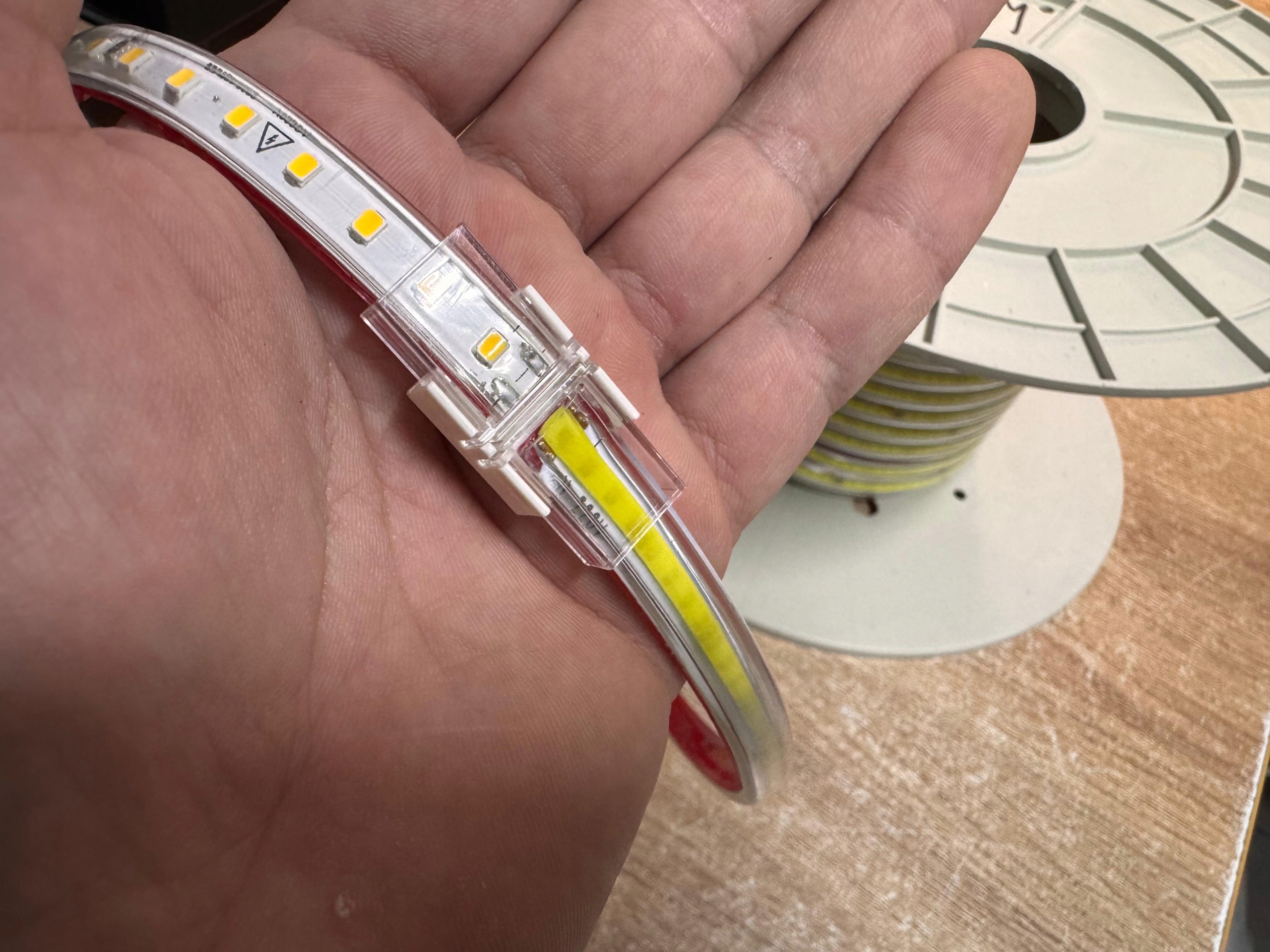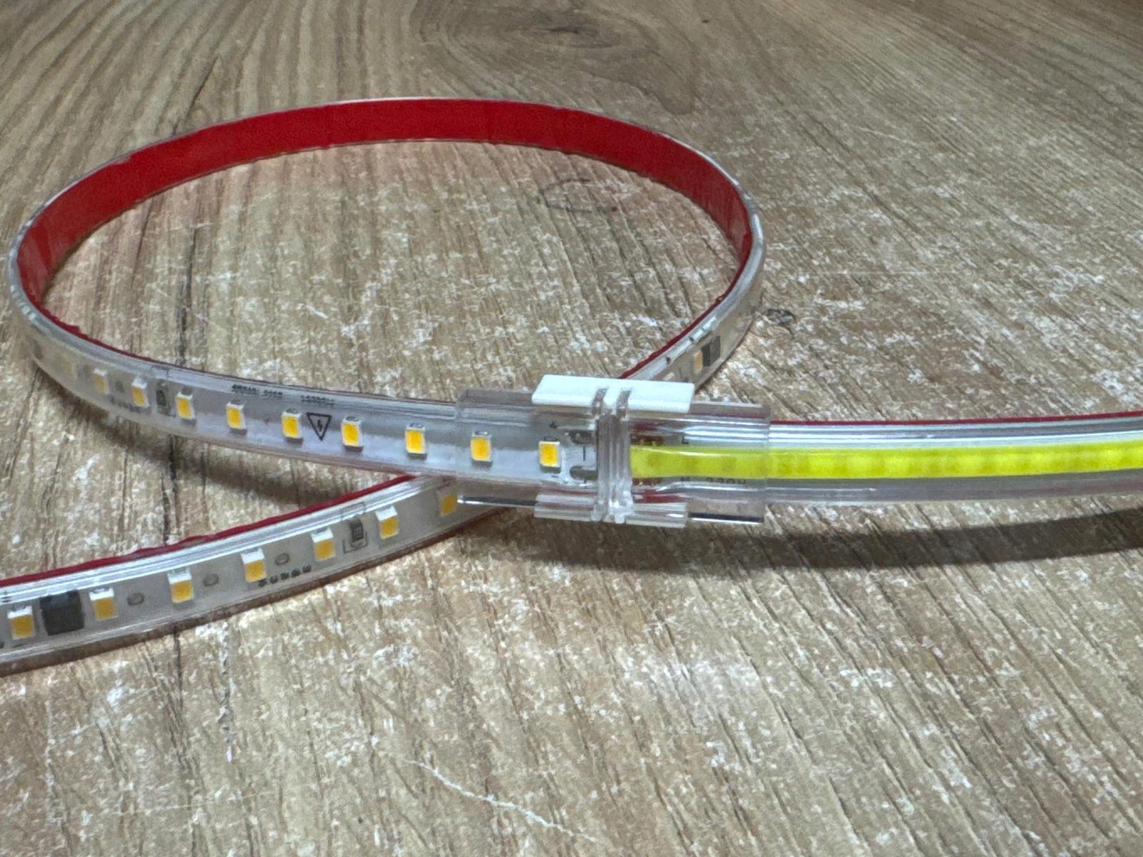 Złączka prosta do taśm LED SMD i COB 230V to praktyczne i niezawodne rozwiązanie, które nie tylko ułatwia montaż, ale także pozwala na szybkie połączenie dwóch odcinków taśmy LED ciętej co 10 cm — w linii prostej, bez potrzeby lutowania.