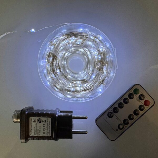 Lampki Choinkowe 1000 LED Mikro Drucik 100m Biały Zimny, Pilot
