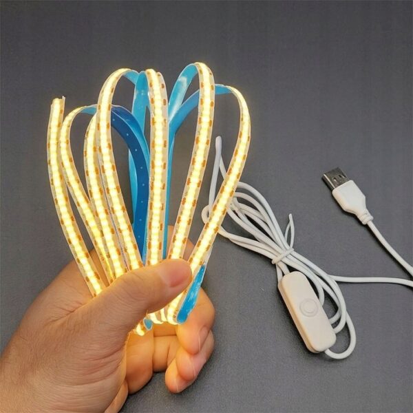 Taśma LED COB 2m USB 5V Biały Ciepły z włącznikiem ON/OFF